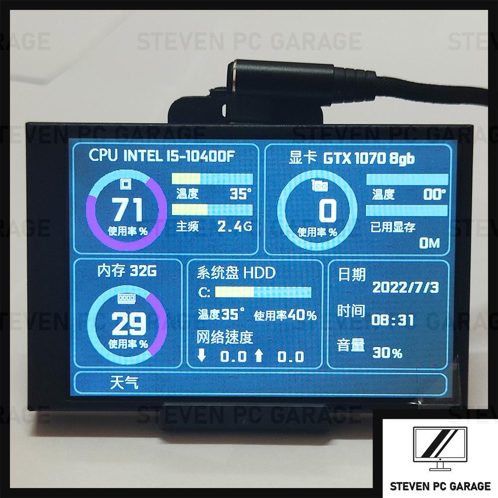 3.5 inch IPS TYPE C to USB Mini CPU Sensor Panel Display Screen NEW DESIGN BLACK / WHITE