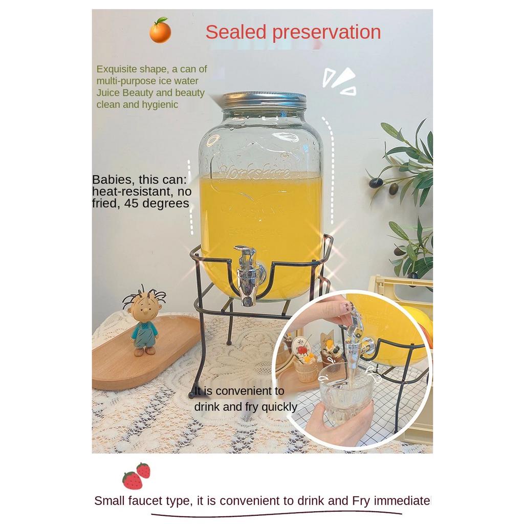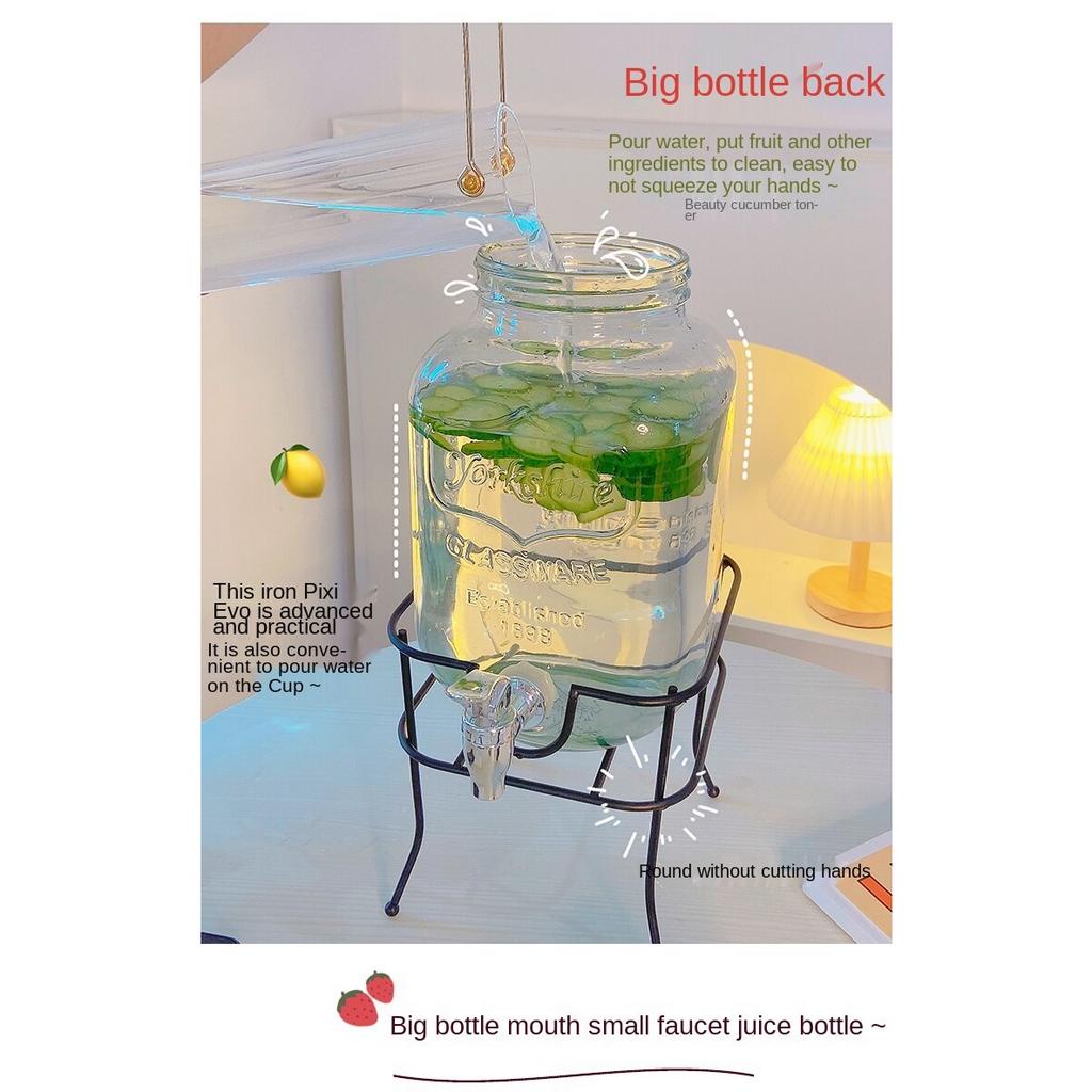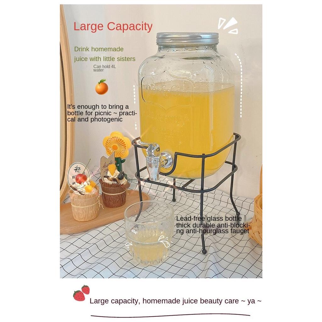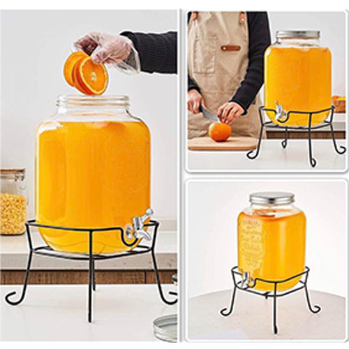 3.5L Juice Beverage Glass Jar Dispenser With Metal Stand and faucet