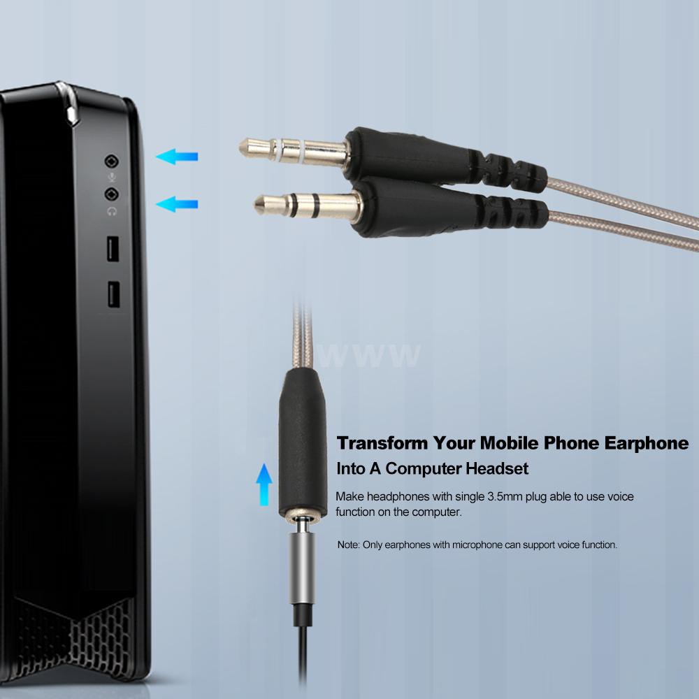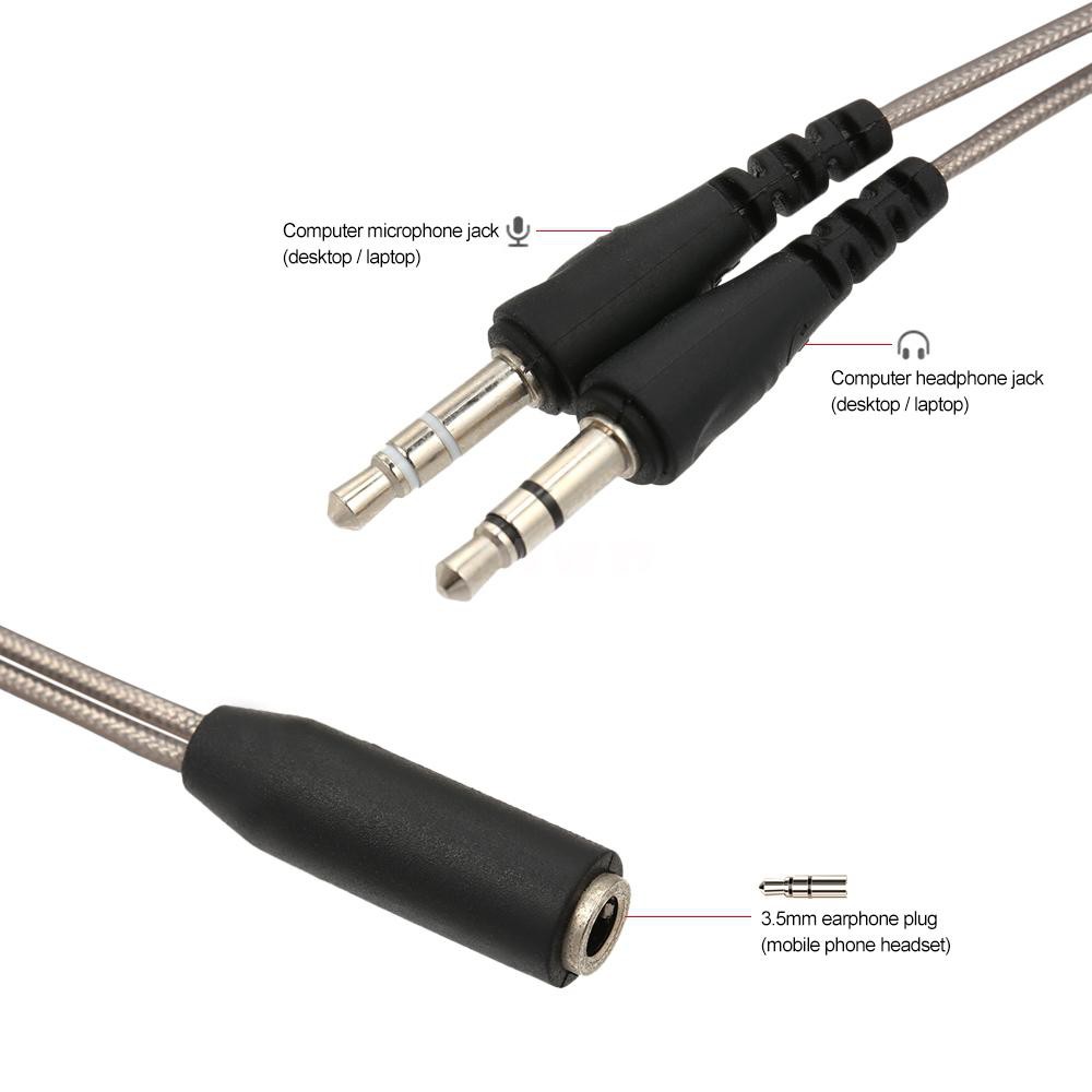 3.5mm Audio Y Splitter Cable 1 Female to 2 Male Converter Earphone Microphone Cord Adapter for Headphone to Desktop Laptop PC