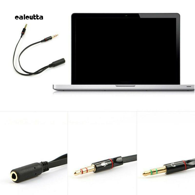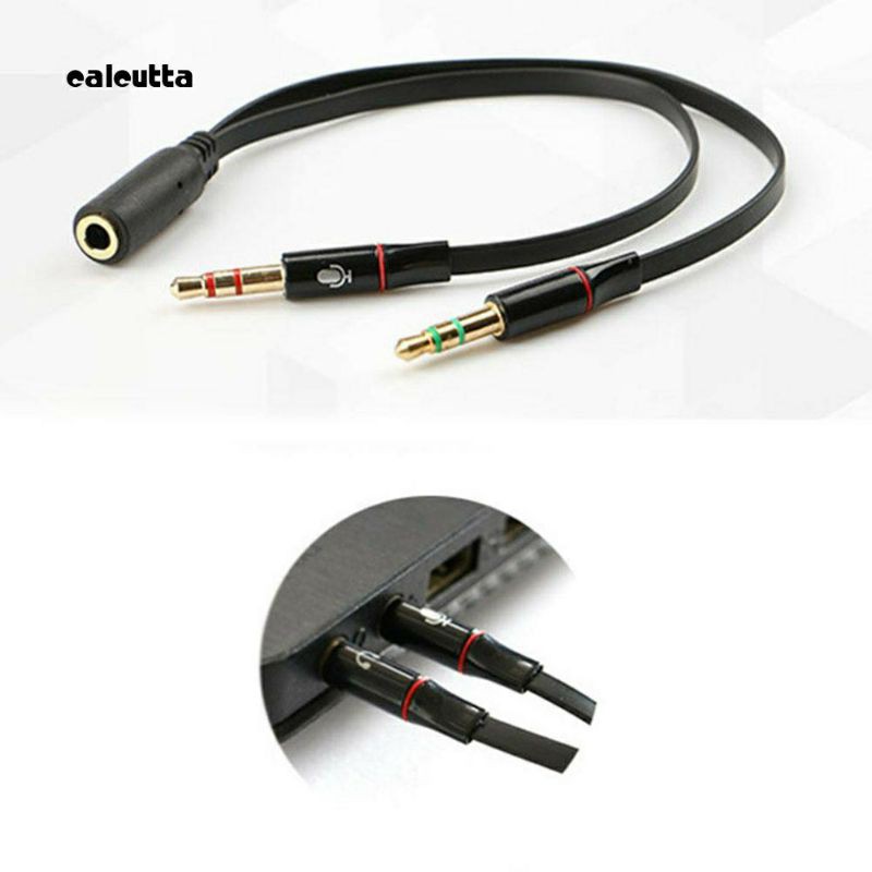 3.5mm Stereo Female to 2 Male Headset Mic Y Splitter Adapter Audio Cable for PC