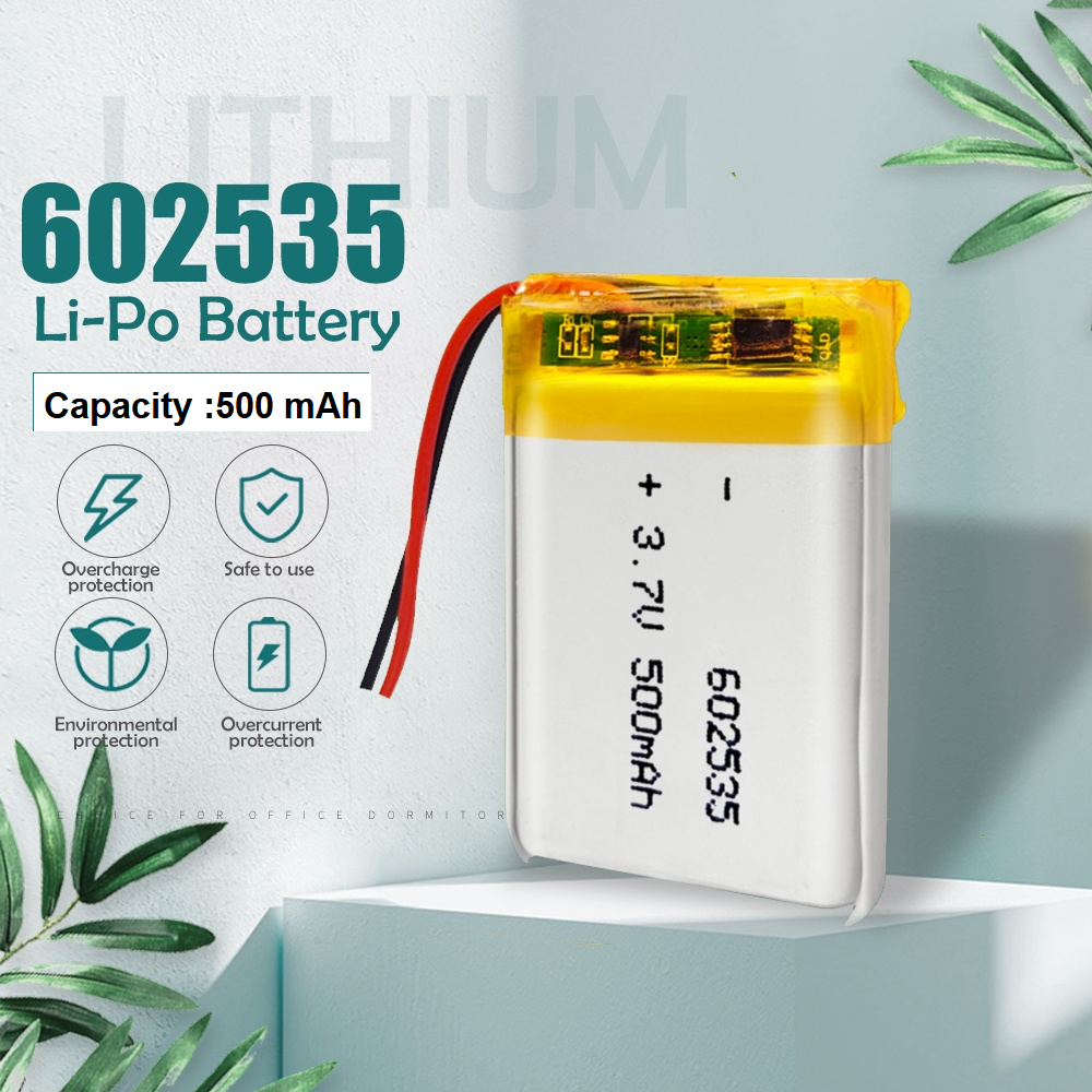 3.7V 500mAh Lithium Polymer lipo Rechargeable Battery 602535 with JST 2pin connector