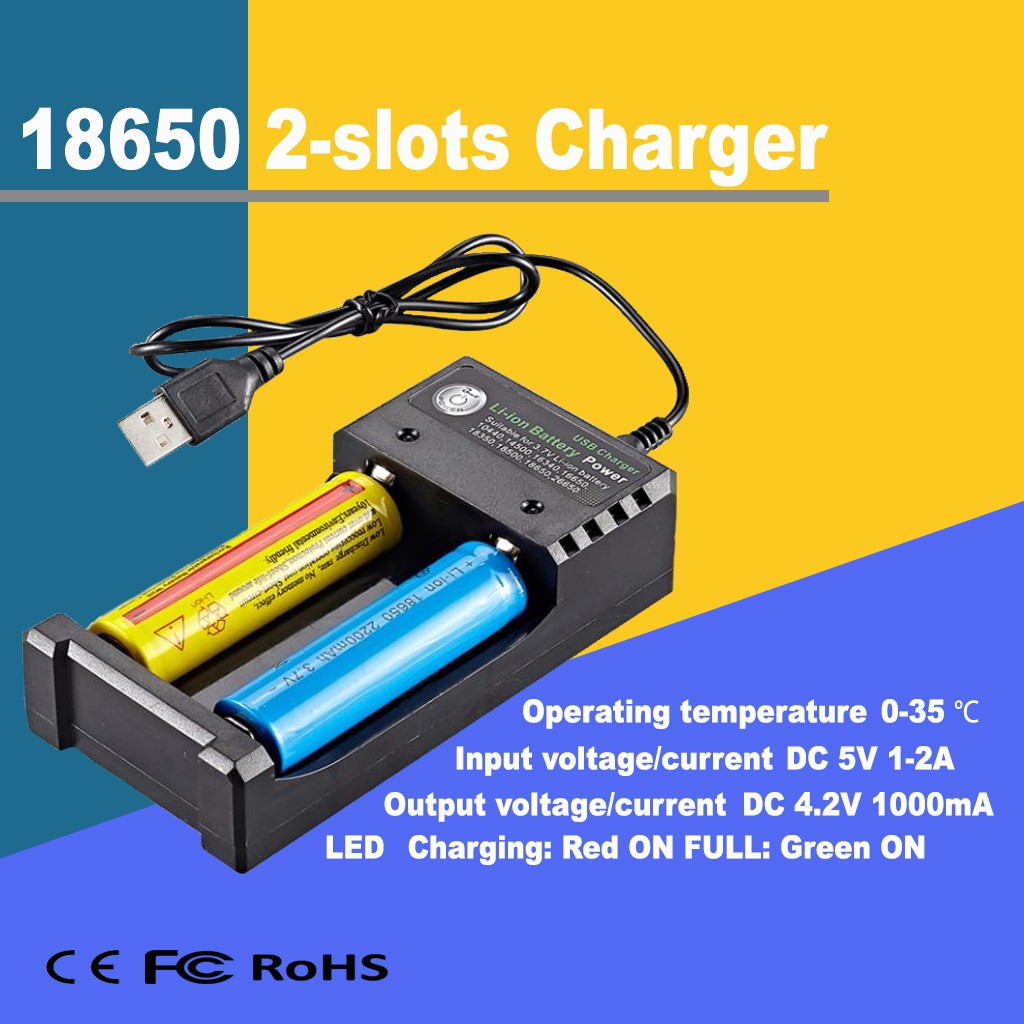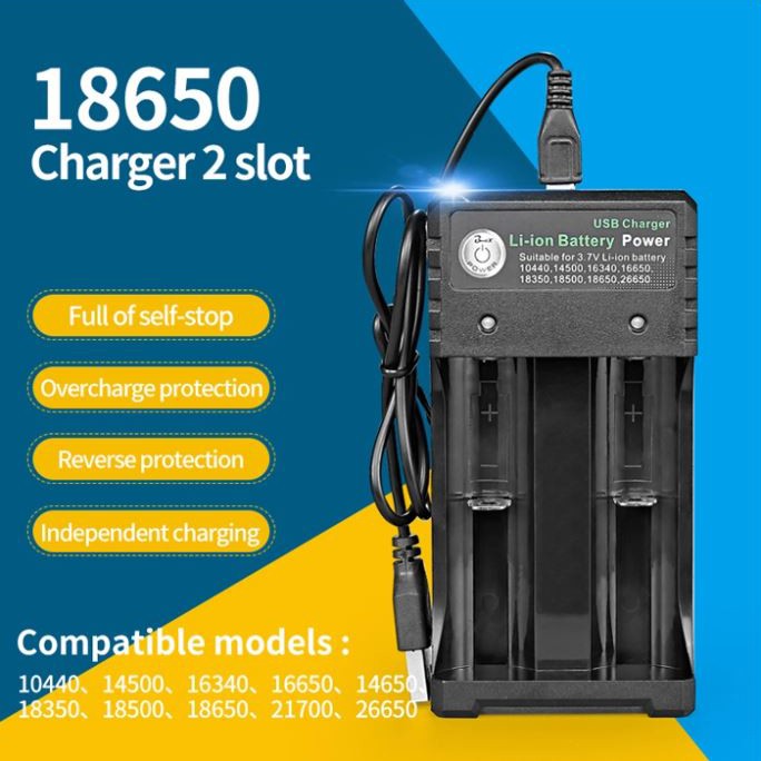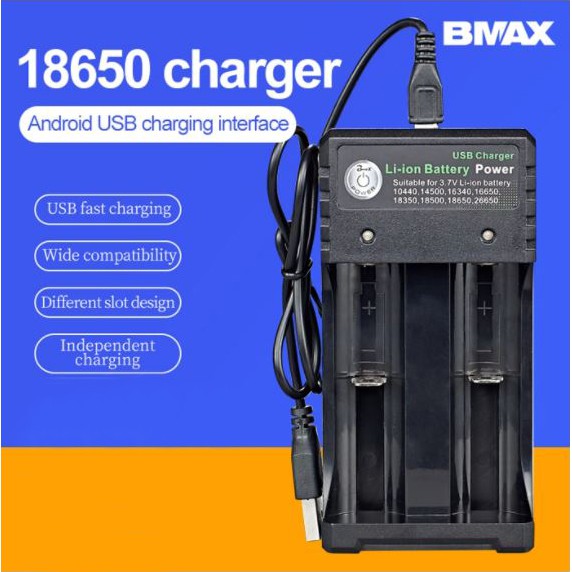 3.7V Lion Battery Charger 2-Slot Smart Portable USB Charger for Li-ion 14500 18500 18650 26650 BH02U