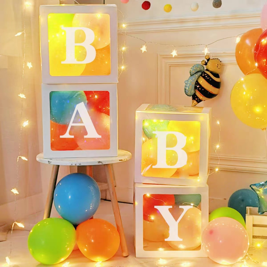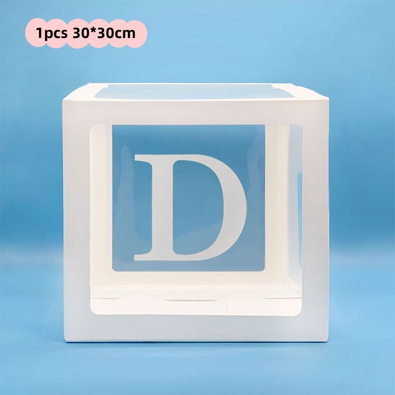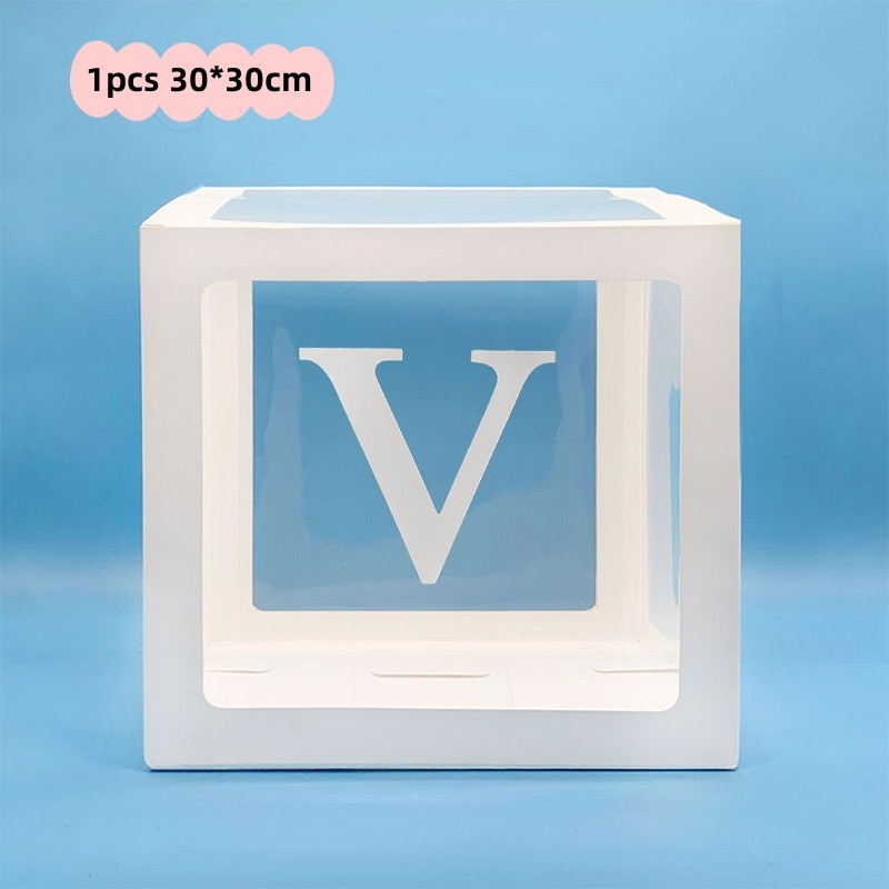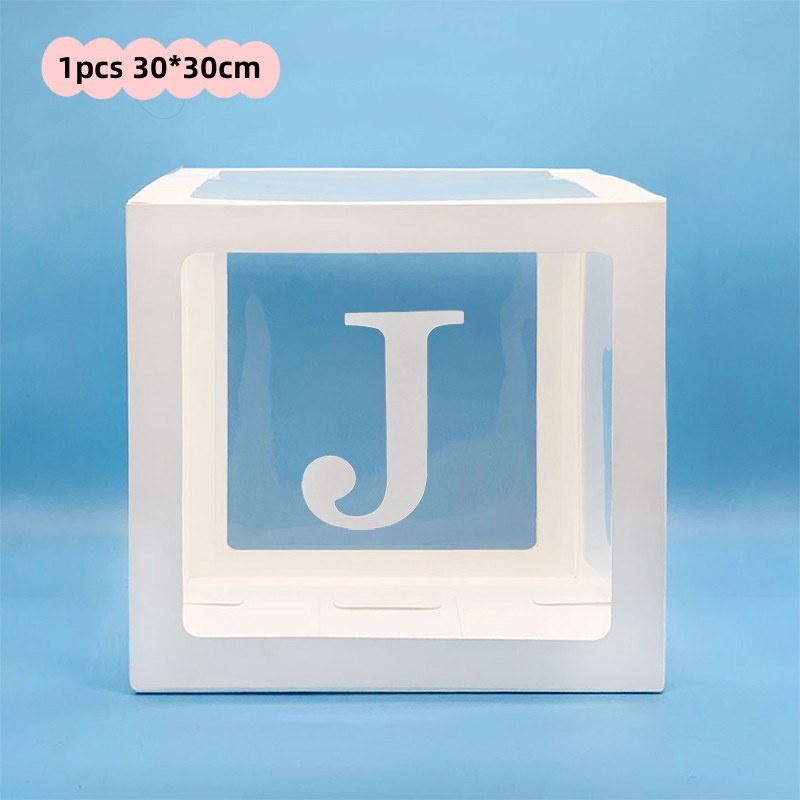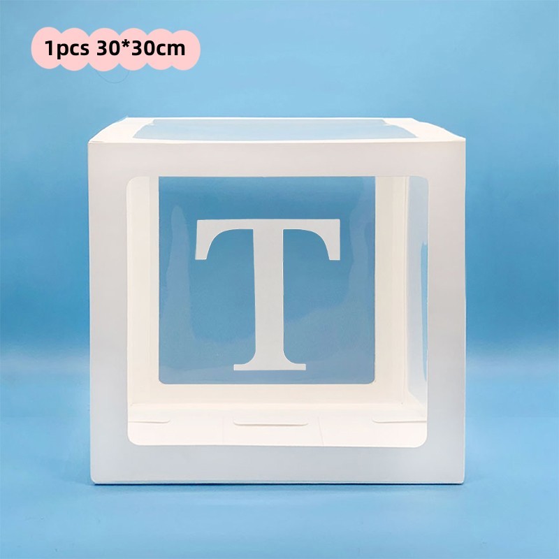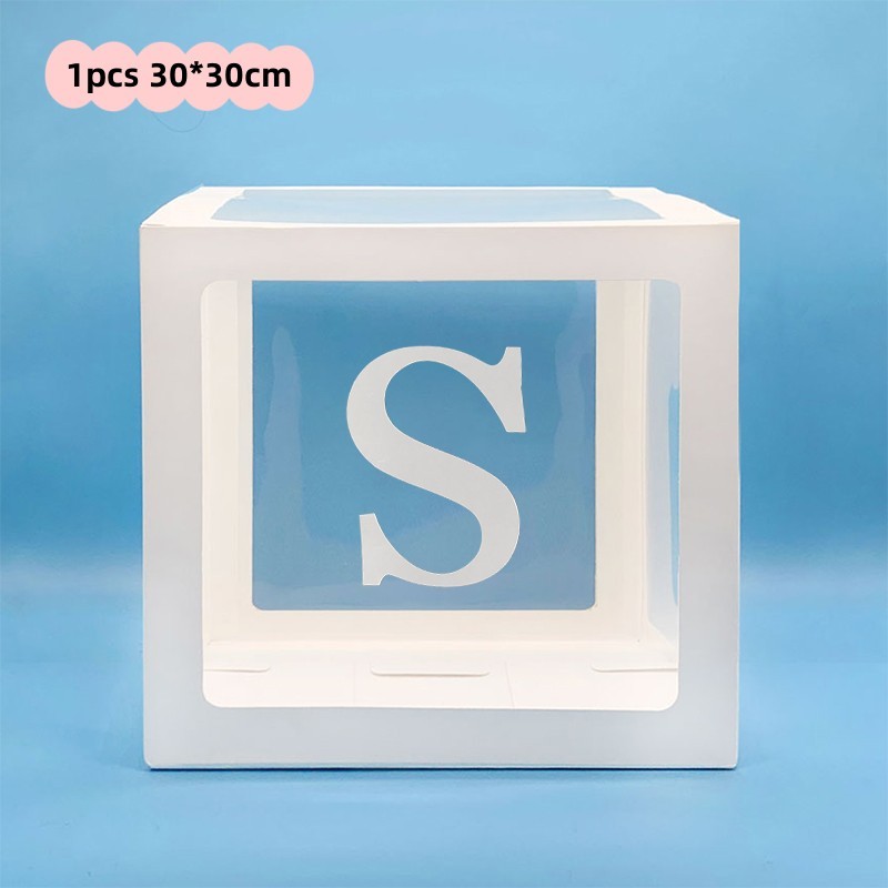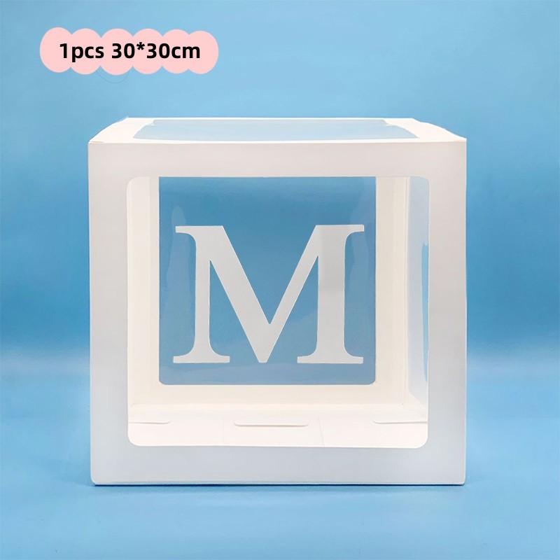30*30cm A-Z Alphabet Transparent White Balloon Box Baby Shower One Year Birthday Background Wall