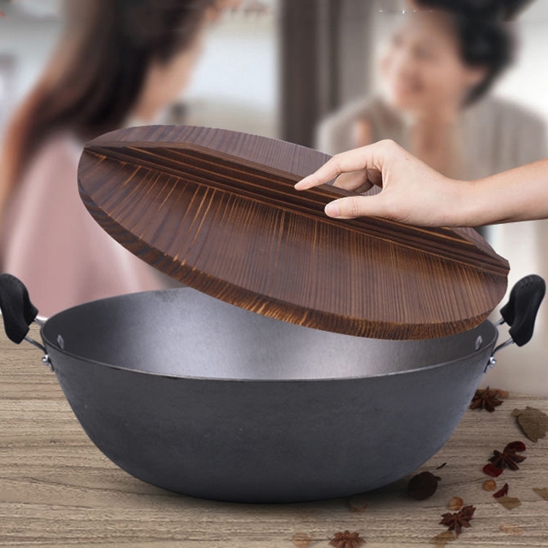 30/40cm Natural Wooden Wok Lid Hand Crafted Wooden Pot Cover Anti-Scalding Chinese Fir Wok Cover