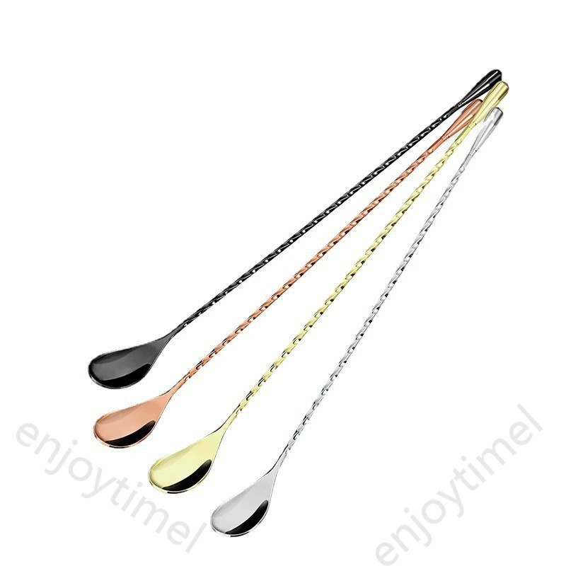 30/40cm Stainless Steel Stir Bar Spoon Mixing Ounces Cocktail Spoon Spiral Pattern Bartender Tools Teadrop Spoon Bar Tool