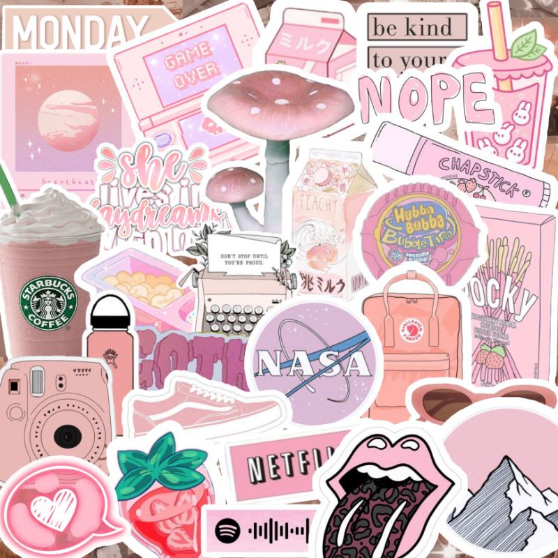 30-50 pcs Pink aesthetic stickers for books design and laptop's