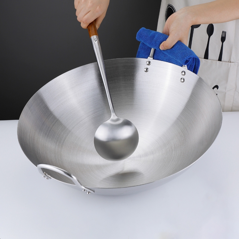 30-50cm Non stick pot Stainless Steel Large Wok Raging Fire Stove Frying Pan Thick Wok Iron Pot