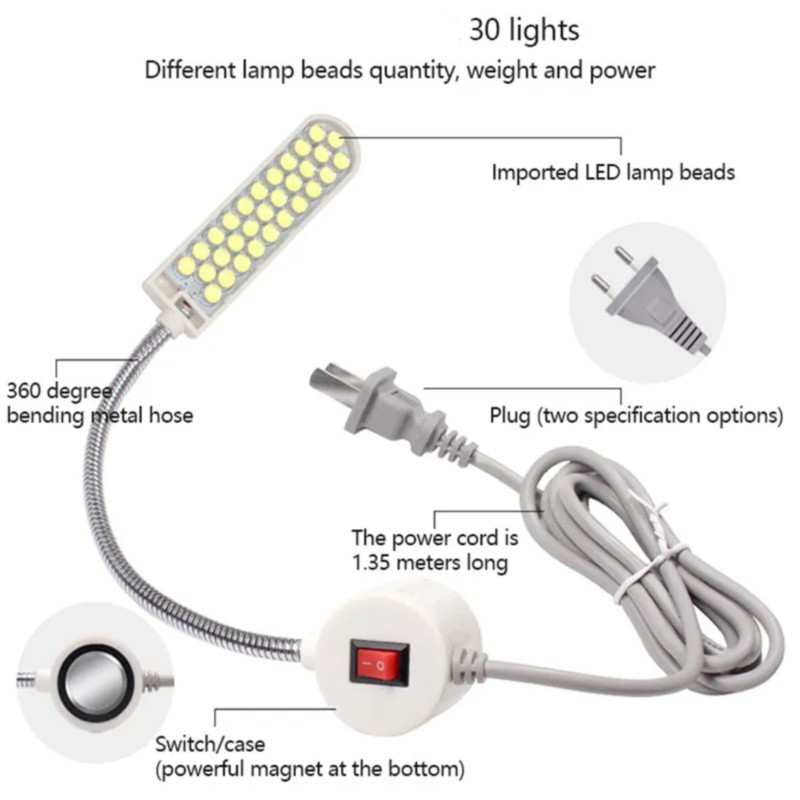 30 LED Sewing Machine Light Magnetic Flexible Work Lamp Gooseneck Lamp with Magnetic