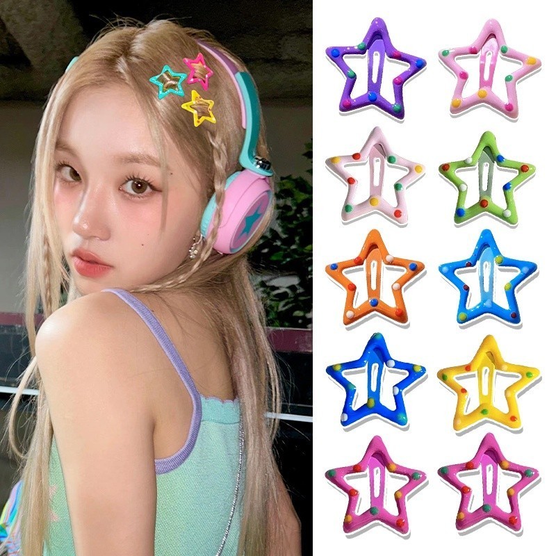 30 Pcs Korean Colorful Y2k Star Hair Clip Set Bangs Bb Clip Girl Cute Hairpins Hair Accessories