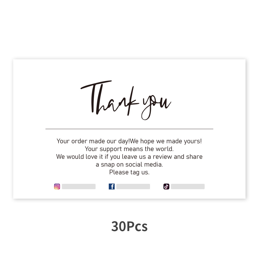 30 Pcs/Pack "Thank You For Supporting My Small Business" Cards Personalized Business Card Writable Ins Fb Tiktok Thank You Card