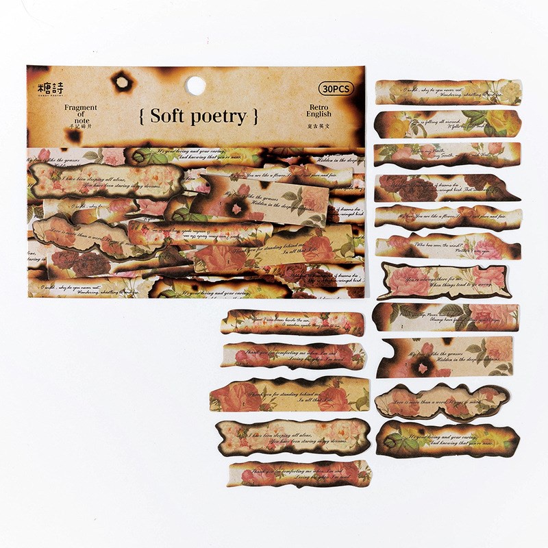 30 Pcs Vintage Old Burned Old Looking Designs Aesthetic Stickers For DIY Diary Planners Scrapbooking Art Craft Supplies