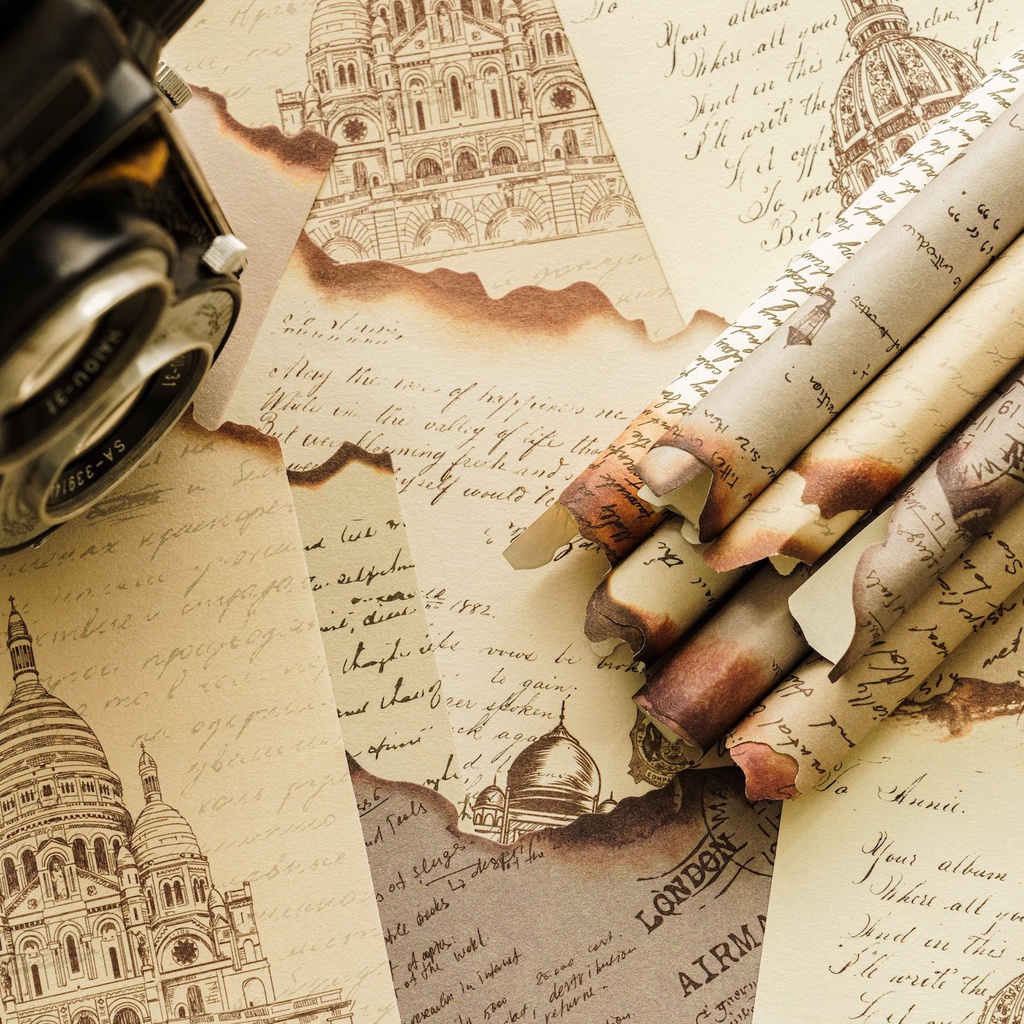 30 Pcs/pack Burned Design Material Paper Junk Journal Planner Scrapbooking Vintage Decorative Diy Craft Background Paper for Art