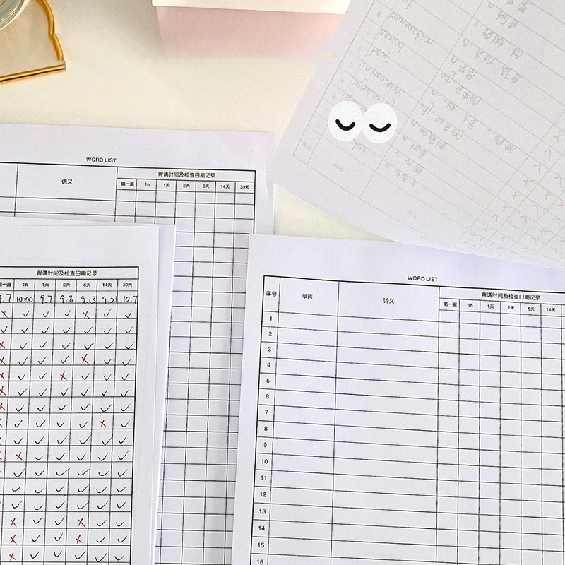 30 Sheets Creative Wordlist Notebook Student Study Memory Curve Word Book