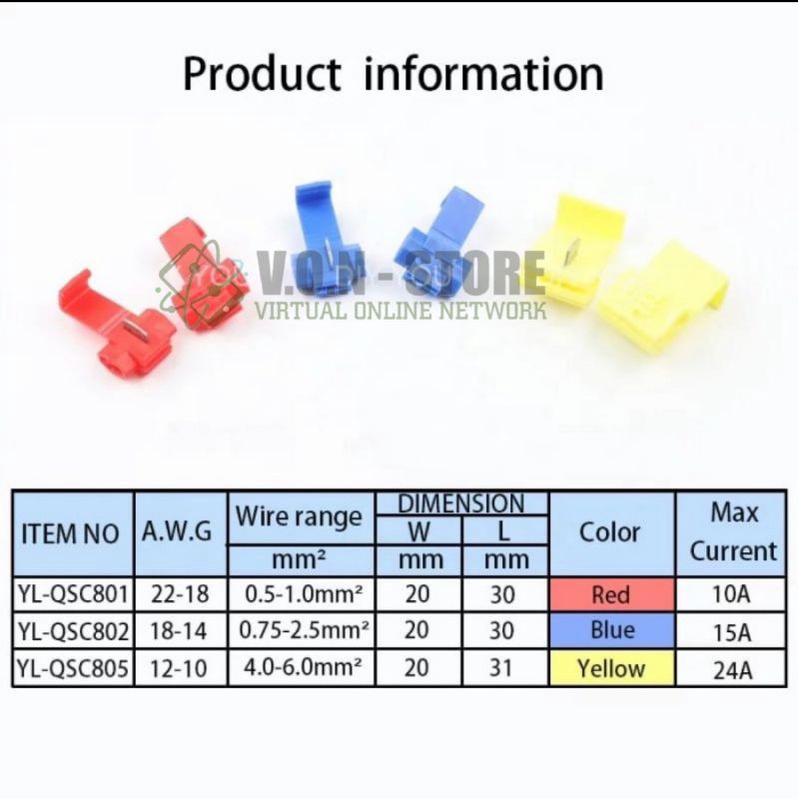 30 pc (3 Variants) Electric Cable Snap Lock Connector Electric Connection Cable