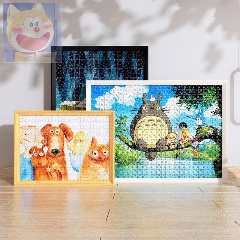 300/500/1000 Pieces Jigsaw Universal Frame,26*38cm/38*52cm/50*75cm Size Puzzle Photo Frame, Wooden Frame Orange cat