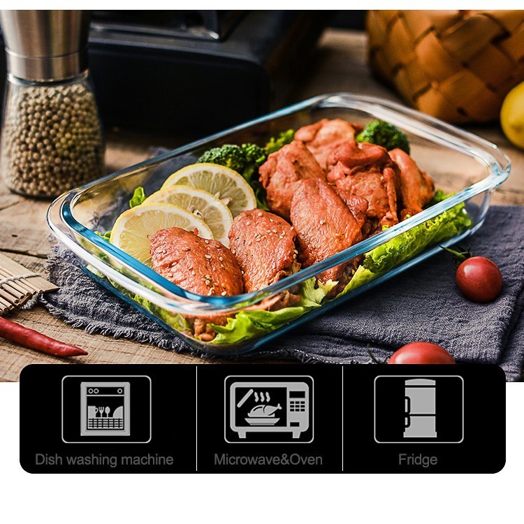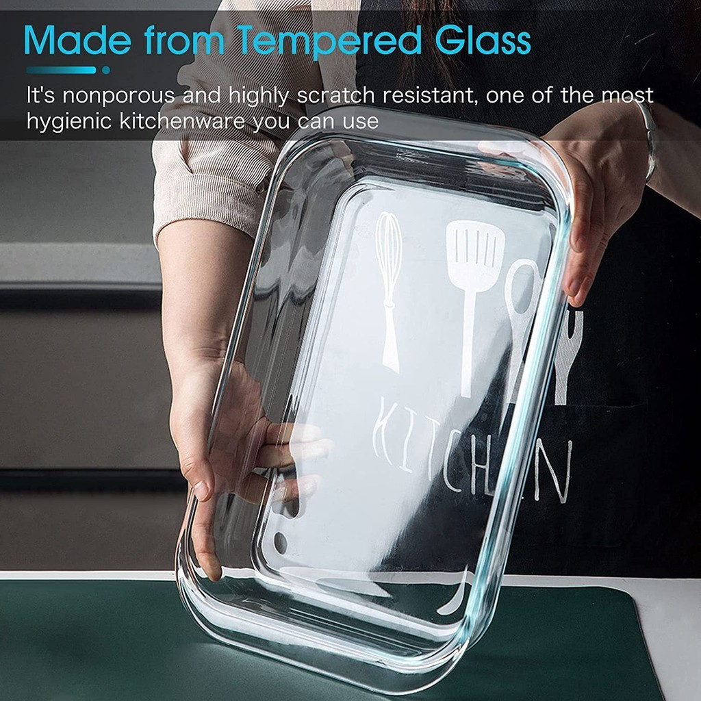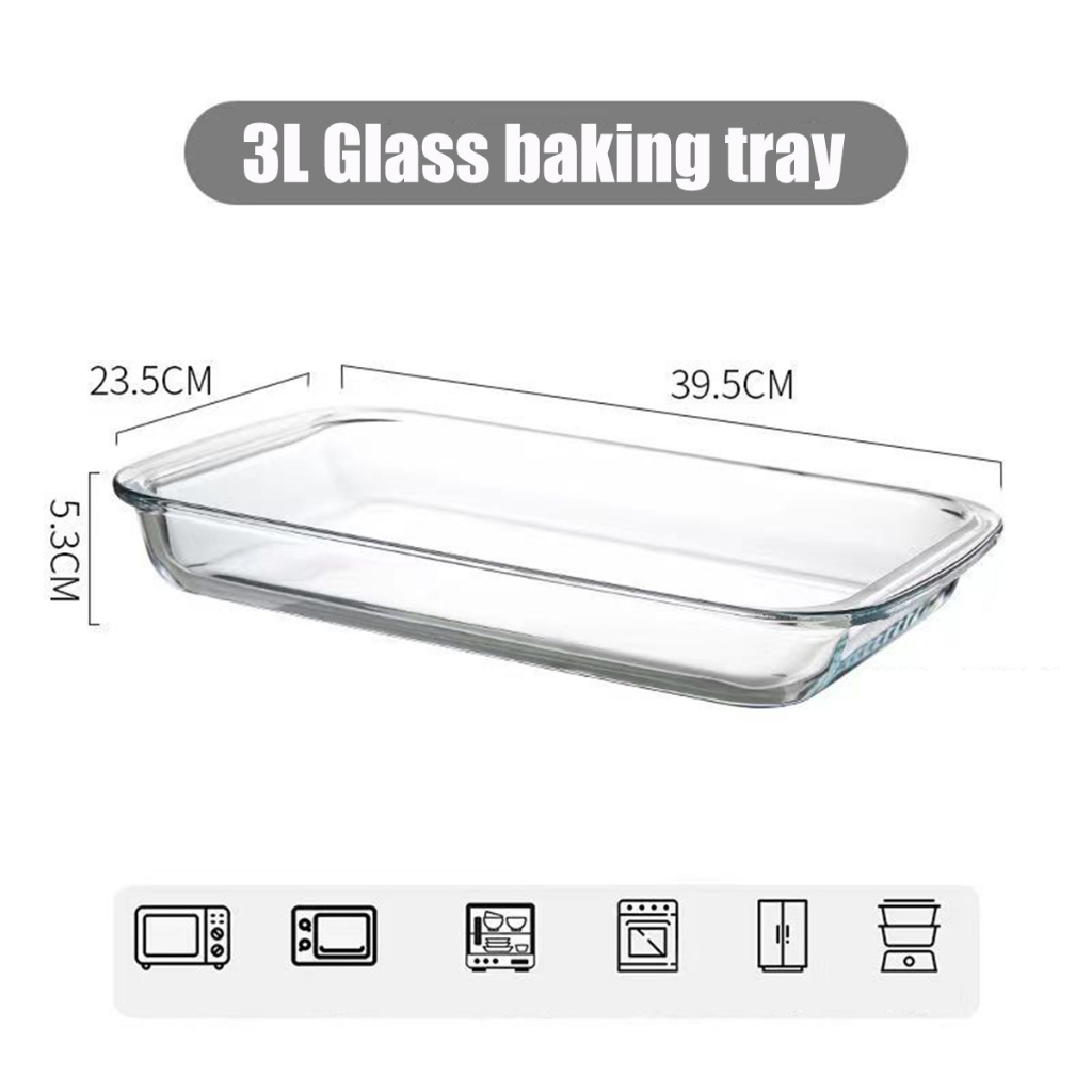 3000ML Glass Baking Tray Safe Microwaveable Borosilicate Baking Dish Rectangular Glass Bakeware
