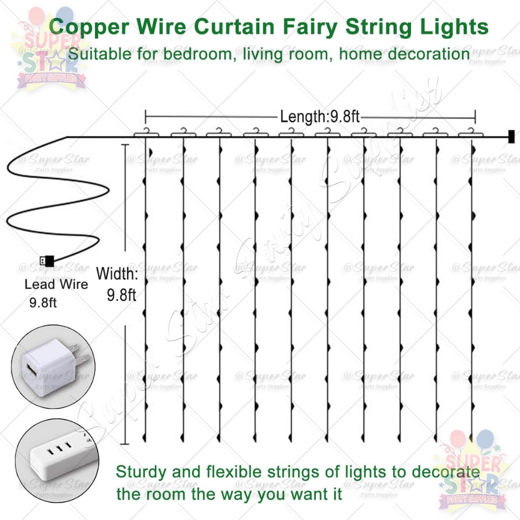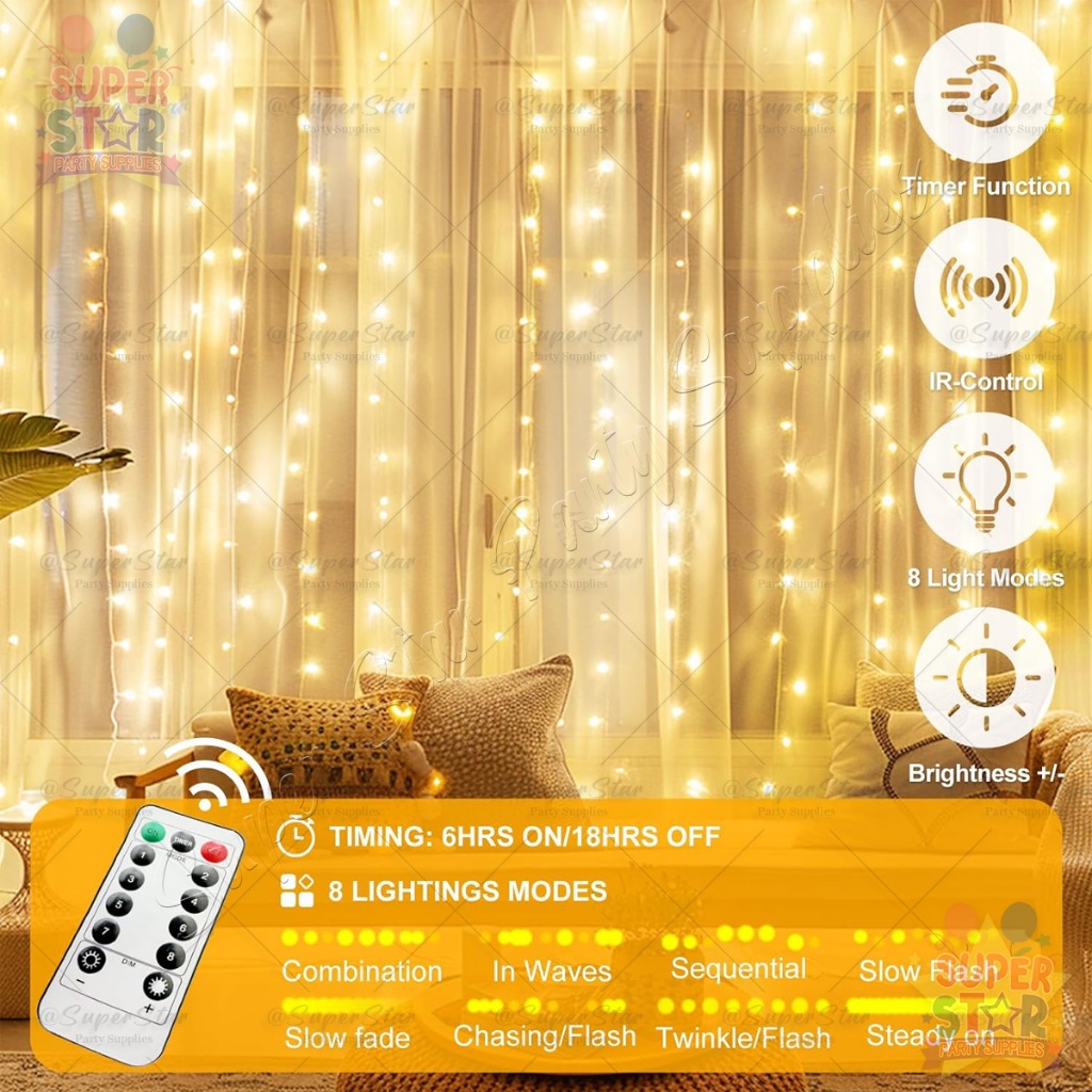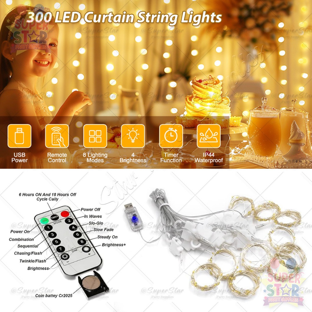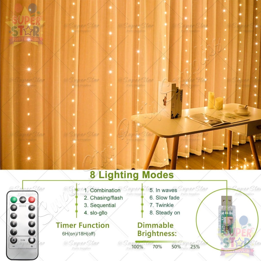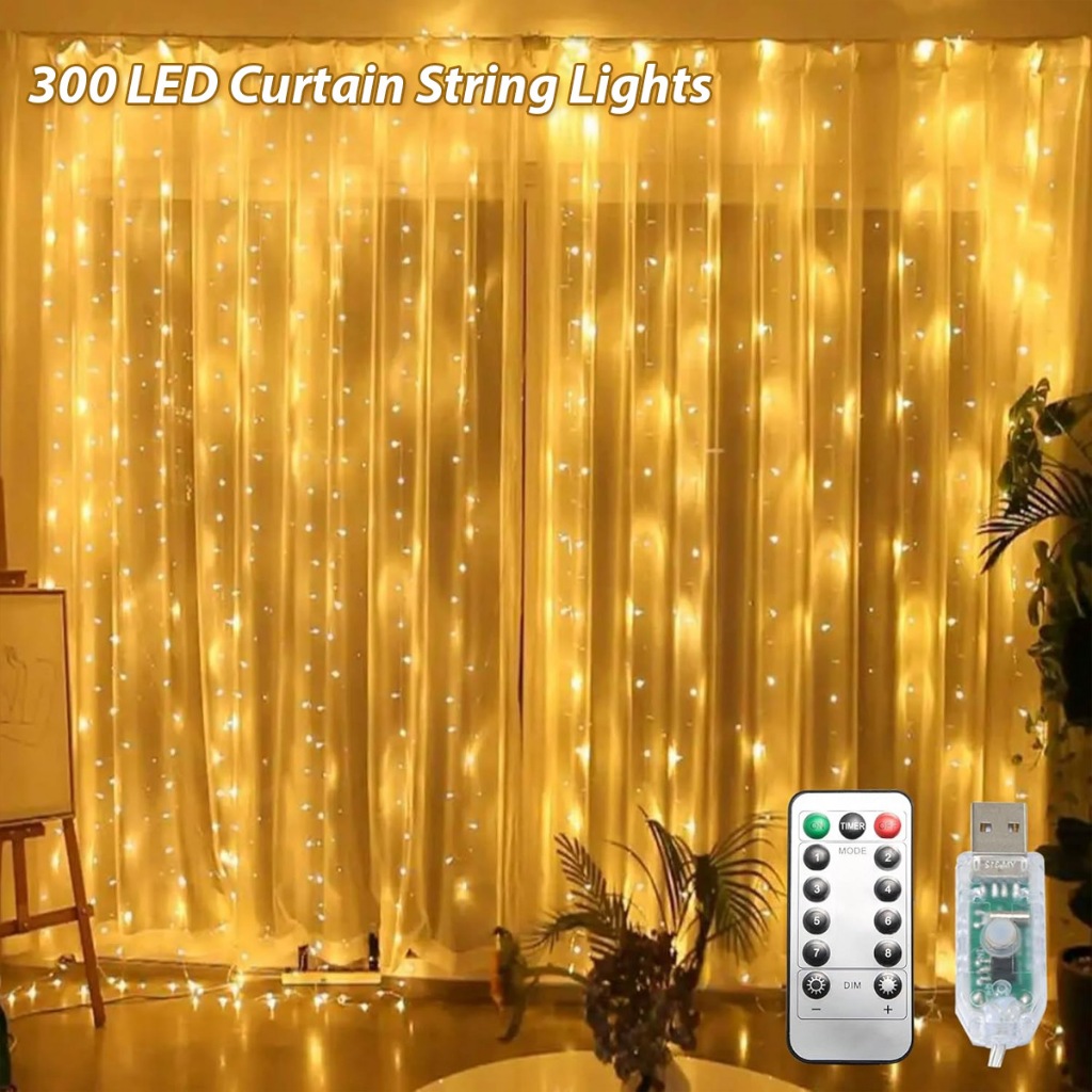 300LED Curtain Light 3x3M Fairy Light 8 Modes USB Powered Waterproof Curtin String Lights Home Decor