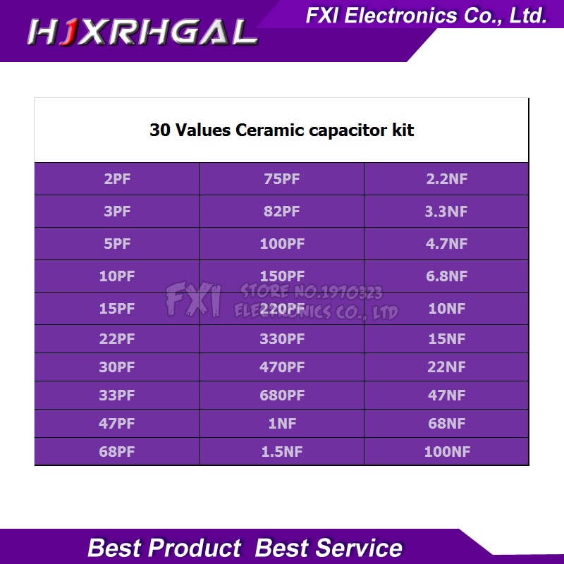 300PCS=30 kinds Ceramic capacitor 2PF-0.1UF component diy samples kit new and original