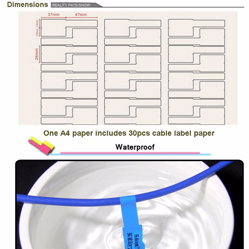 300PCS Cable Label A4 Self-adhesive Cable Sticker Tear Identification Tags Network cable label