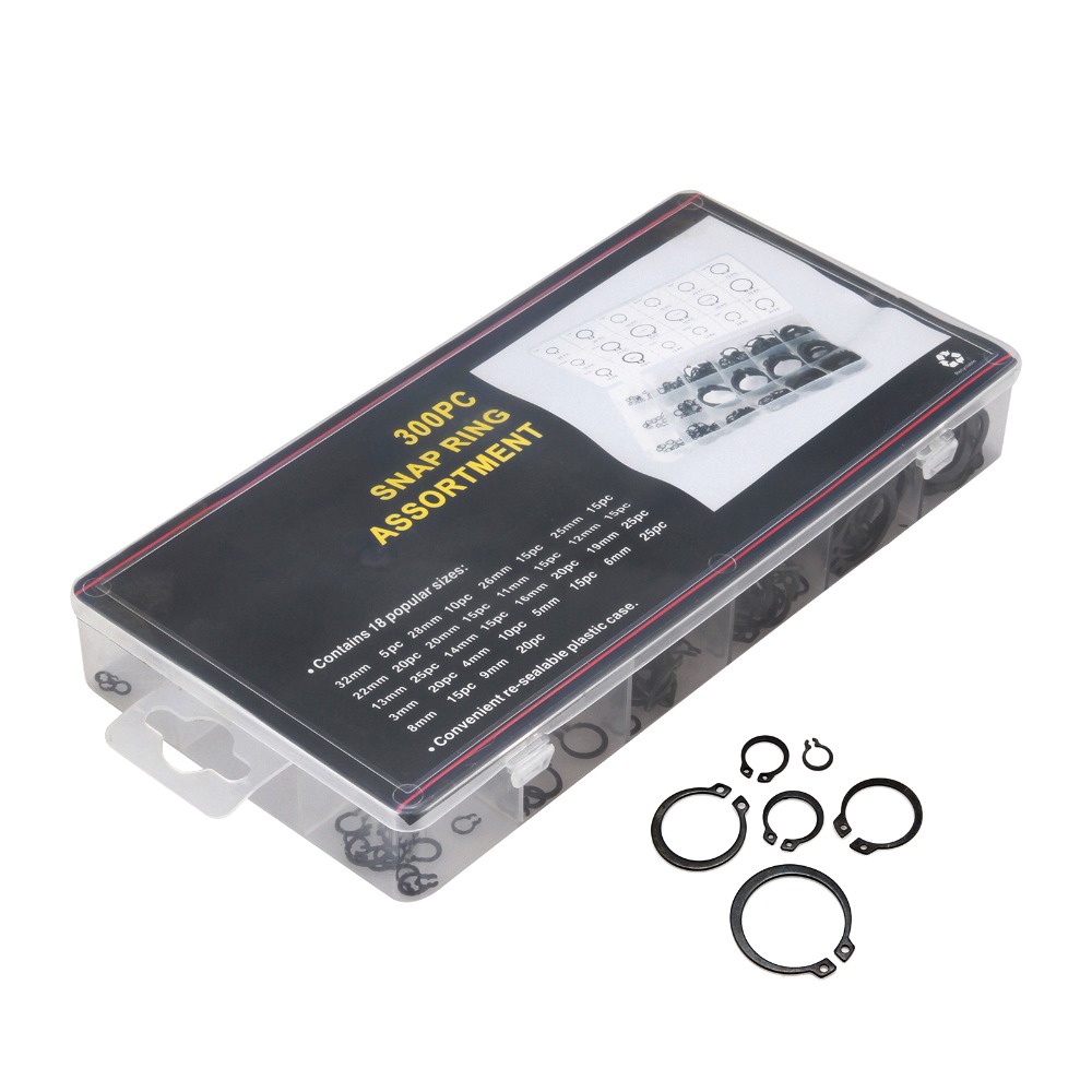 300Pcs Internal Snap Ring Washer Circlip External Retaining Ring Assortment 3-32mm Circlip Kit