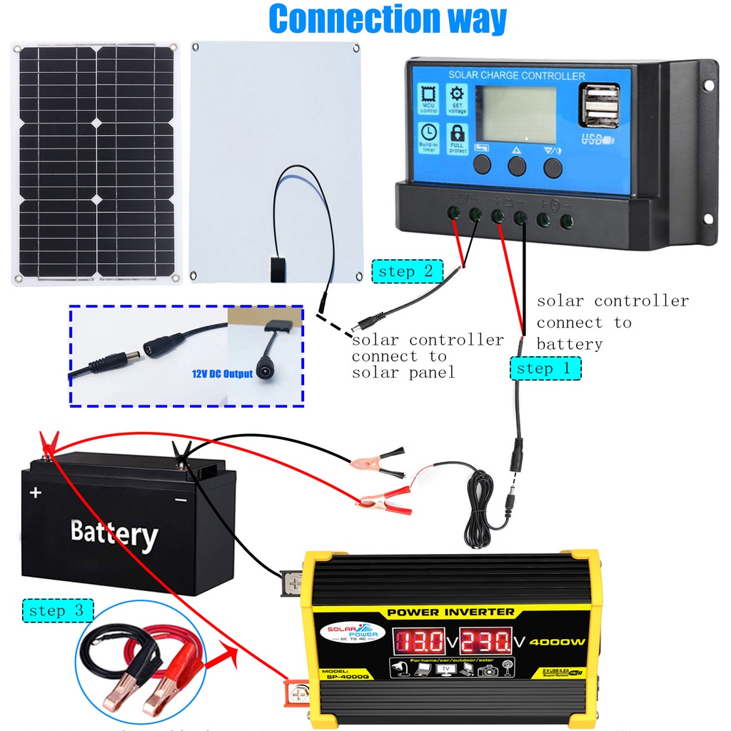 300W Solar inverter System Solar Panel Battery Charger Complete Controller Grid Universal Socket