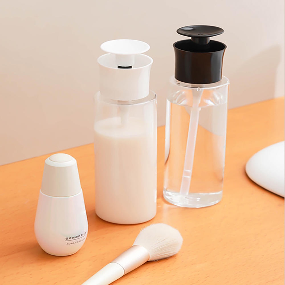 300ml Push Down Pump Dispenser,Leak-Proof Liquid Bottle Container One-Touch Lockable Pump Bottles for Alcohol,Acetone,Toner,Nail Polish Remover