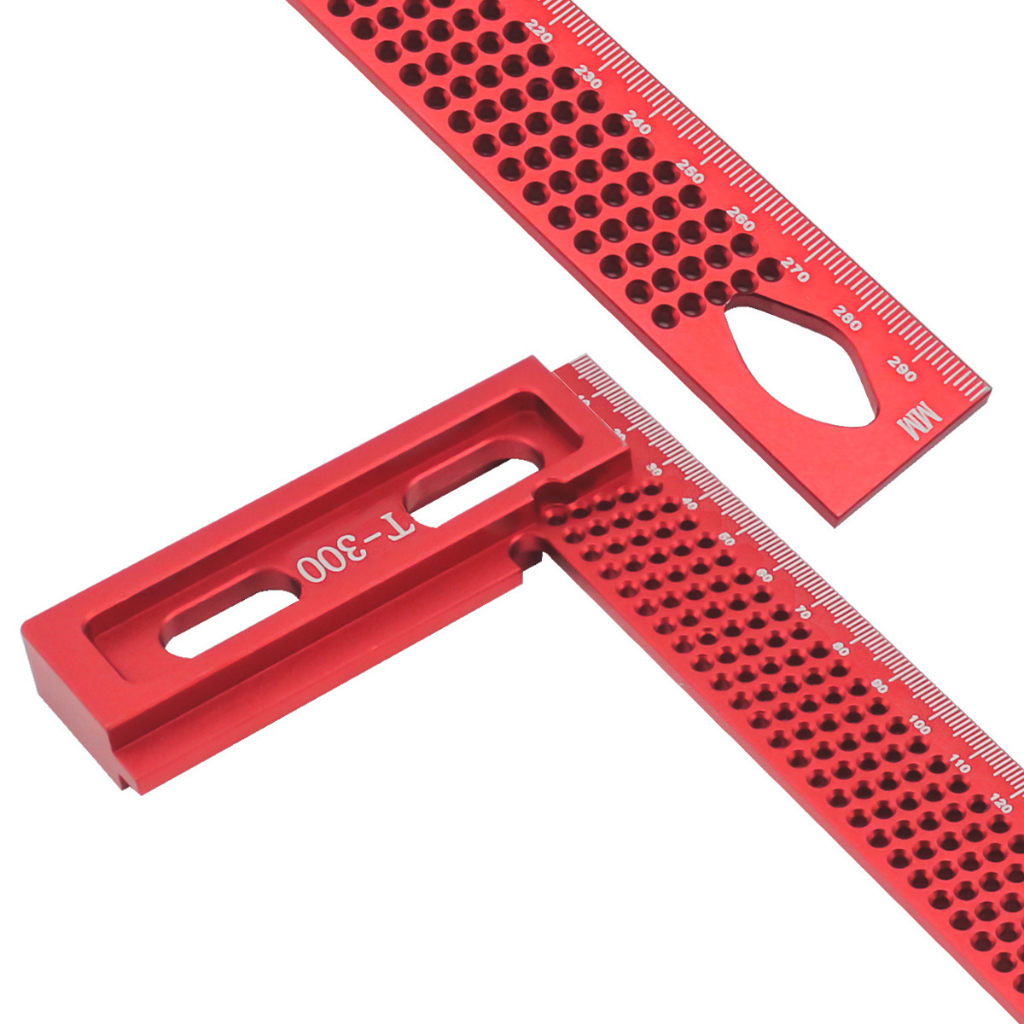 300mm Woodworking Square Aluminum Framing Mitre Square Carpenter Scribe L-Type Hole Ruler Aluminum Alloy Right Angle Protractor