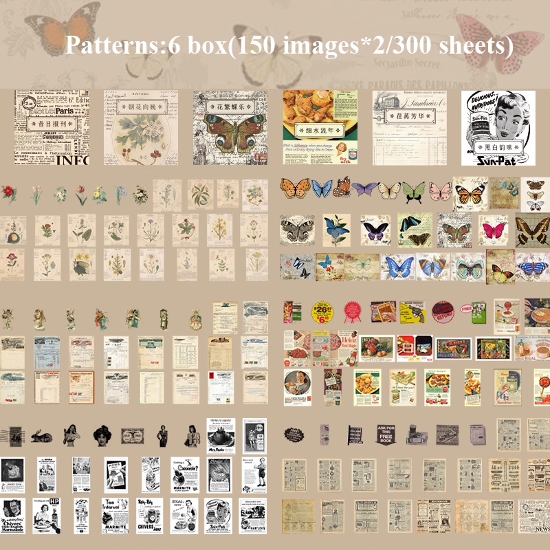 300pcs Stickers Junk Journal Stickers Film Paper Junk Journal Art Collage DIY Photo Album DIY Craft Scrapbooking School Supplies