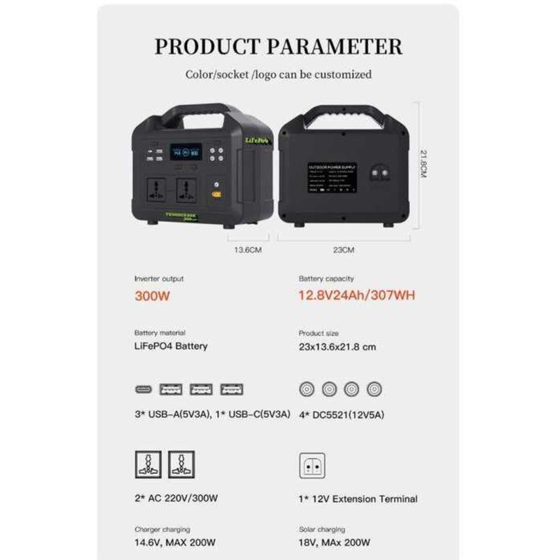 300w Thunderbox lifepo4 powerstation 300 Lite, 307wh, Pure Sine wave, 220V 60hz Lite, 307wh, wave