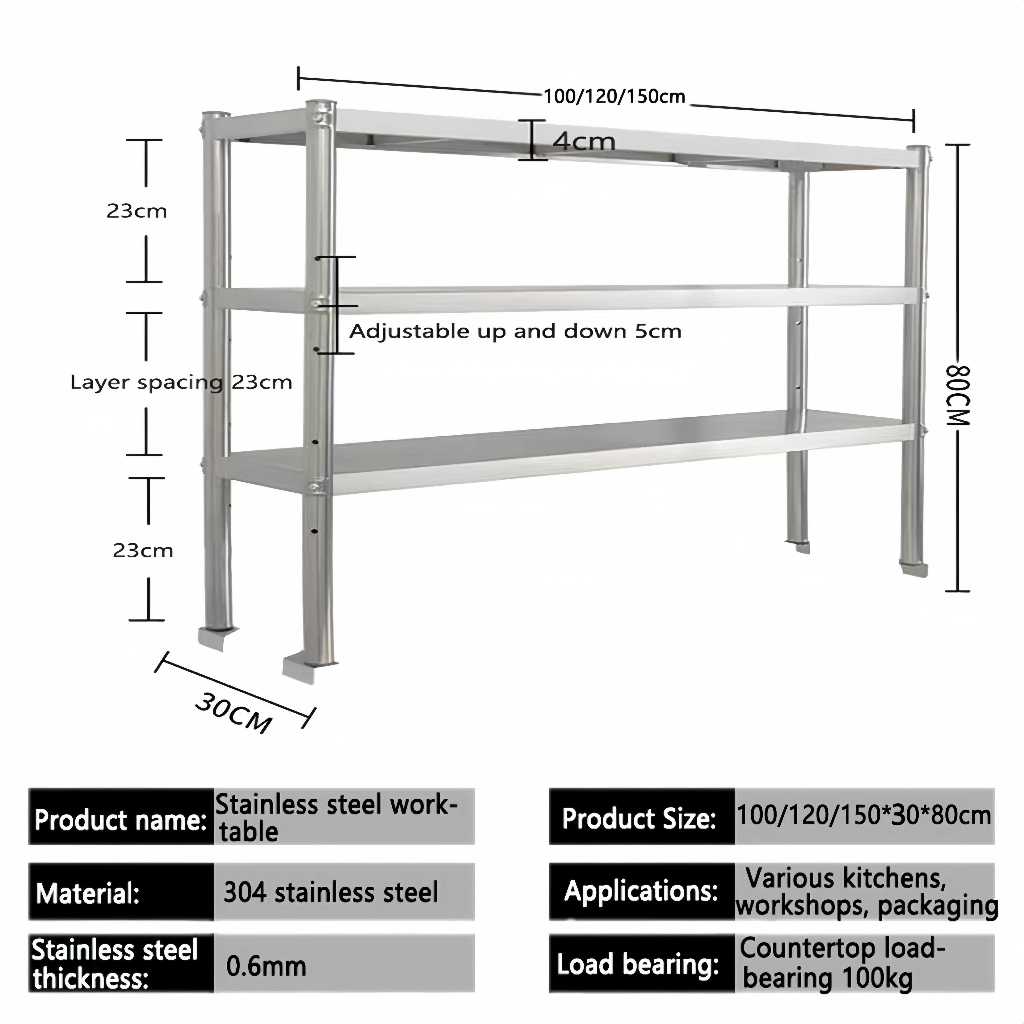 304 2-layer table Stainless steel worktable Easy to clean console new thickening packing table