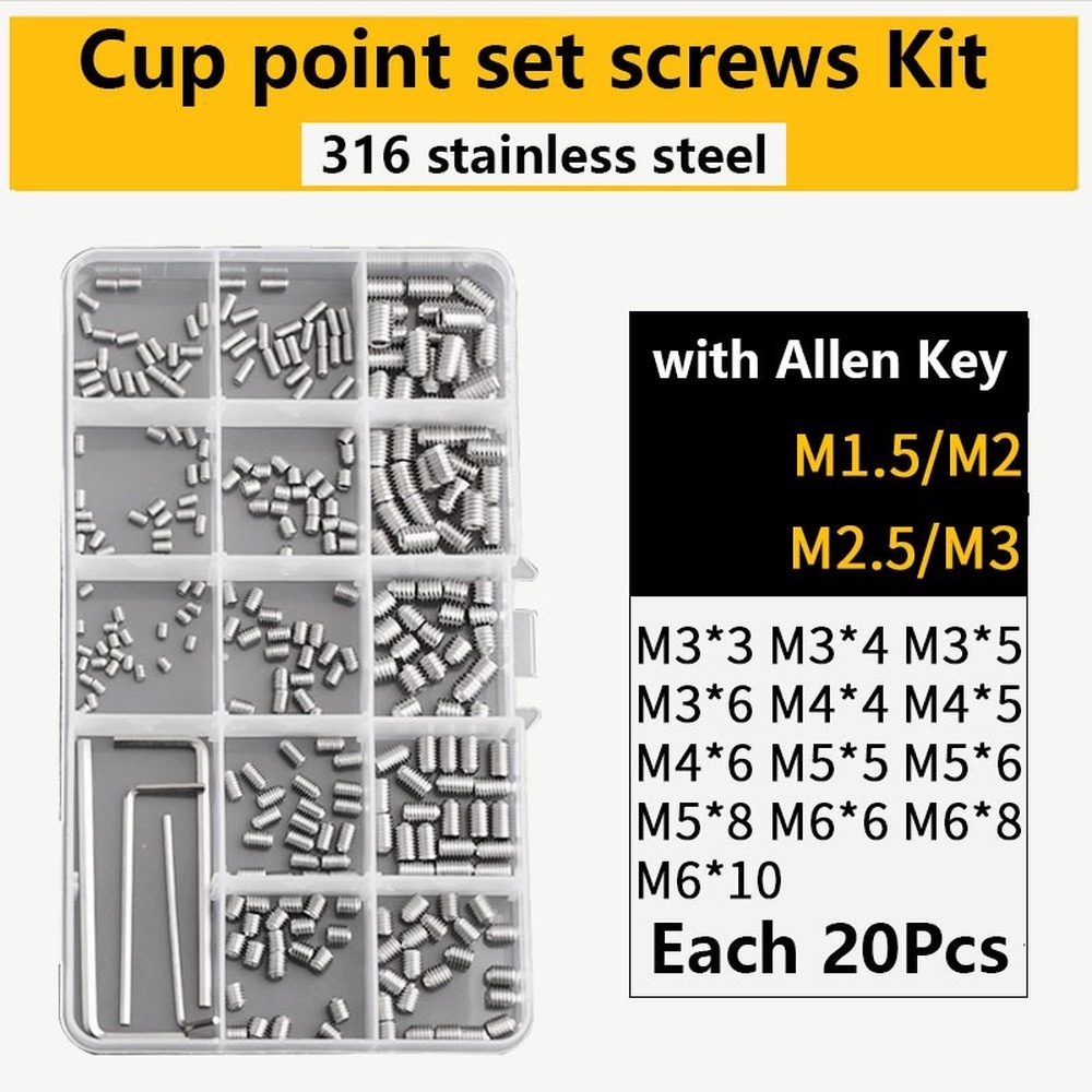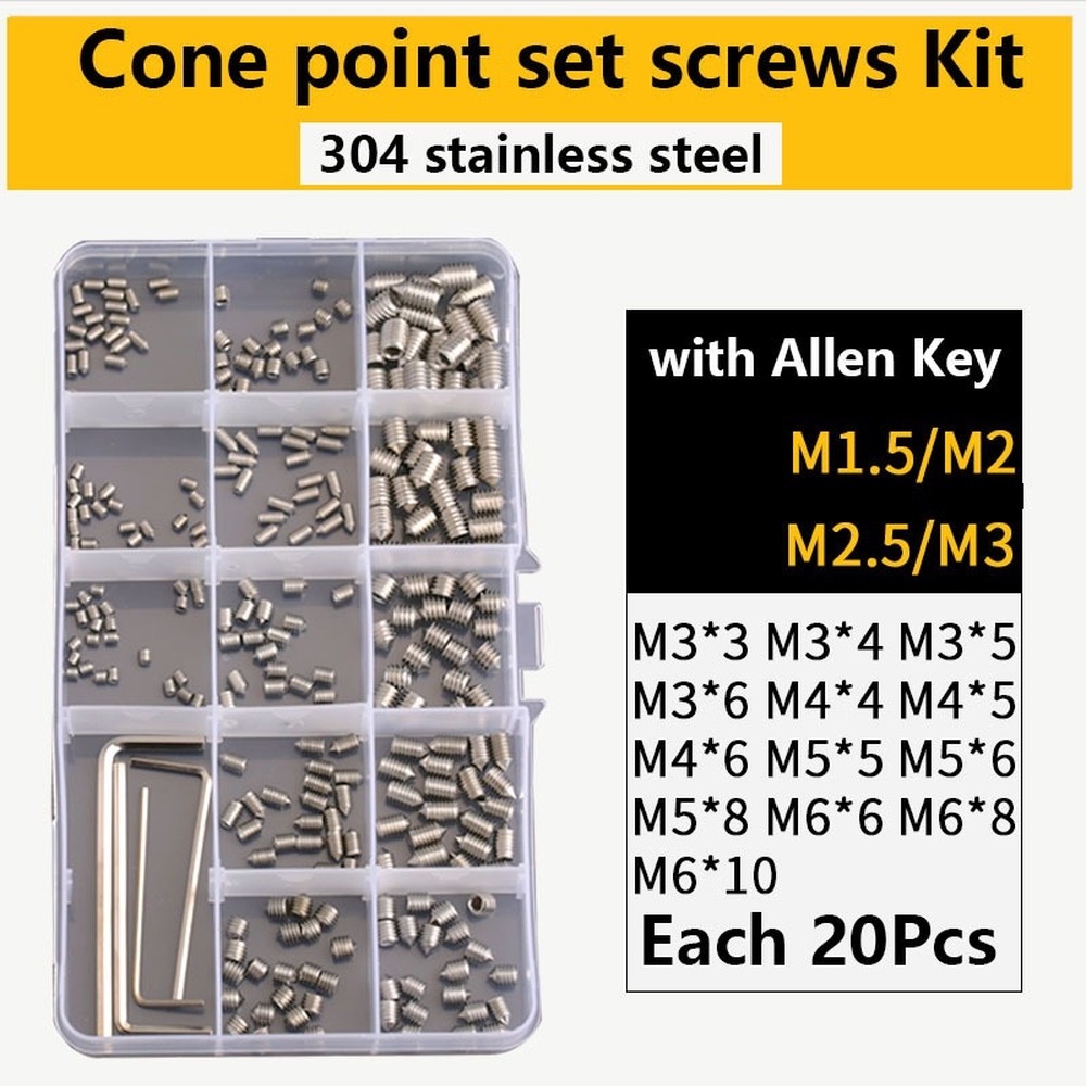 304 316 stainless steel inner hexagonal drive dog cone flat cup point set screw assortment set Allen head Screw