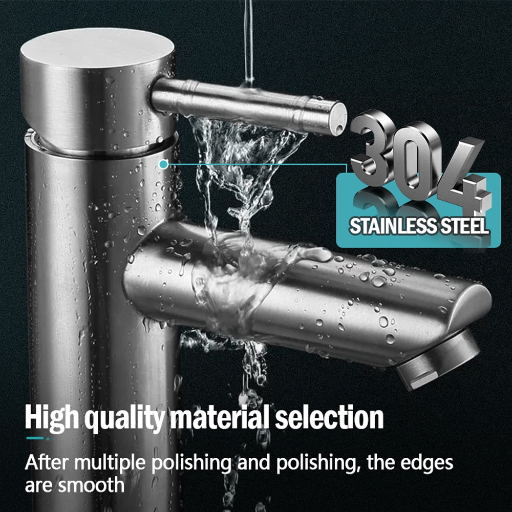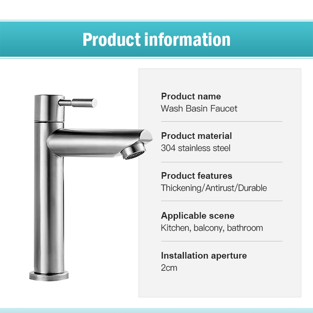 304 Faucet Stainless Steel Lavatory Heavy Duty Faucet Tall Basin Faucet Bathroom Lavatory Tap