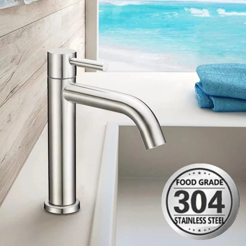 304 Faucet Stainless Steel Lavatory Heavy Duty Faucet Tall Basin Faucet Bathroom Lavatory Tap