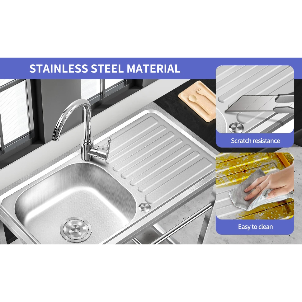 304 Househlod Kitchen Lababo Portable Stainless Steel Sink with Stand and faucet Drain Set