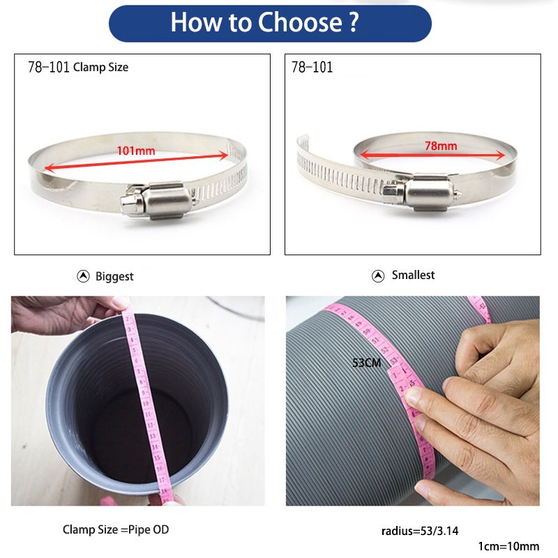 304 Metal Hose Clamp- Adjustable Stainless Steel Pipe Clamp Clamp Pipe Clamp Water Pipe Clamp