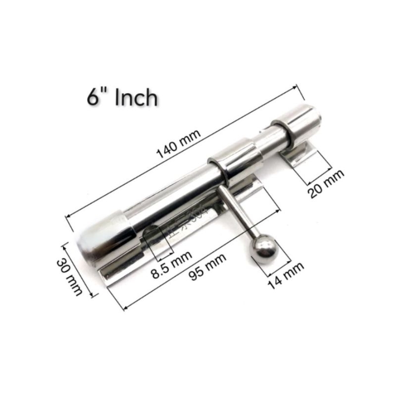 304 STAINLESS Solid Barrel Bolt Bolt Gate Latch Thickened Security Door Solid Barrel Bolt(Price 1pc)