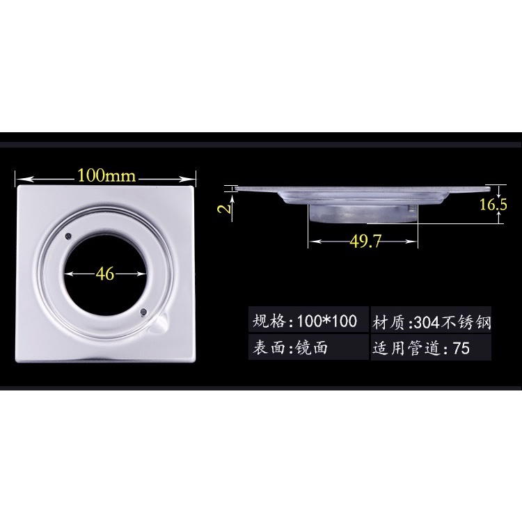304 Stainless Clean out 4" x 4" square Heavy Duty SUS304 Stainless 4 x 4 Clean Out Floor Drain