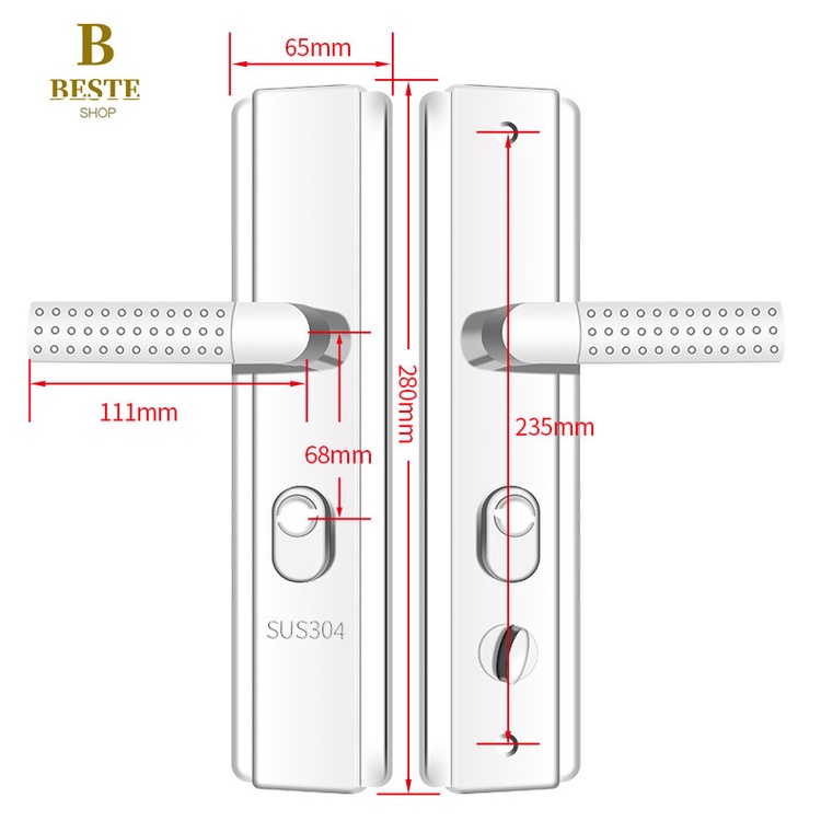 304 Stainless Steel Anti-theft Door Lock Set Security Handle Entrance Door Lock Household Universal