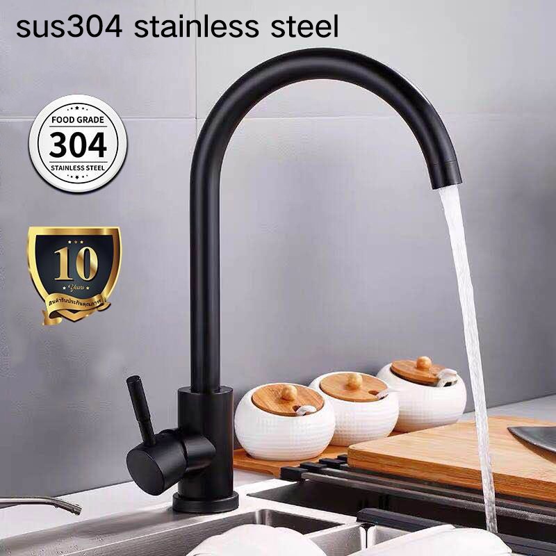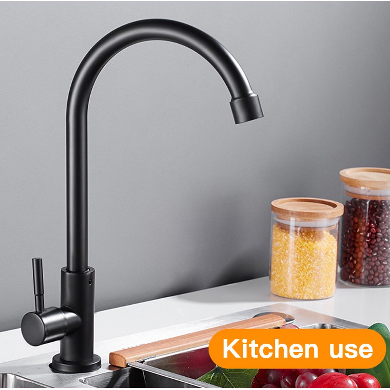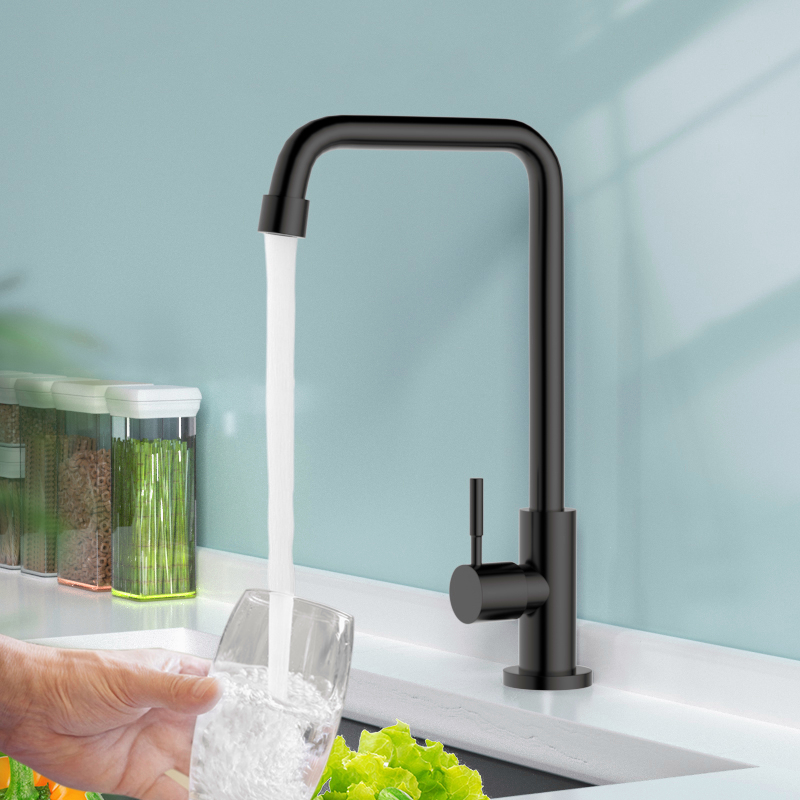 304 Stainless Steel Black Kitchen Faucet Single Cold Sink Faucet Bathroom Faucet Balcony Faucet