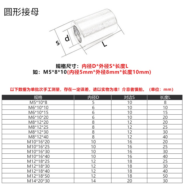 304 Stainless Steel Extended Cylindrical Nut M3M4M5M6 Wire Rod Welding Connector Hex