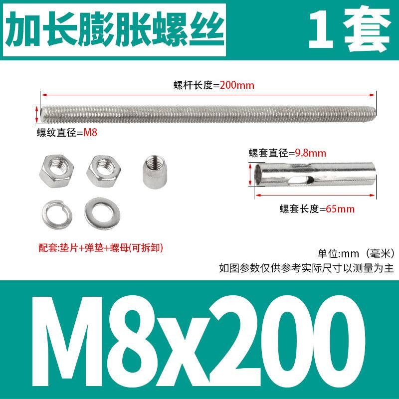 304 Stainless Steel Extended Expansion Screw M6-M12 Ultra-Long Ceiling Pull Explosion Inner Explosion Drying Rack Dedicated Expansion Bolt Bolt