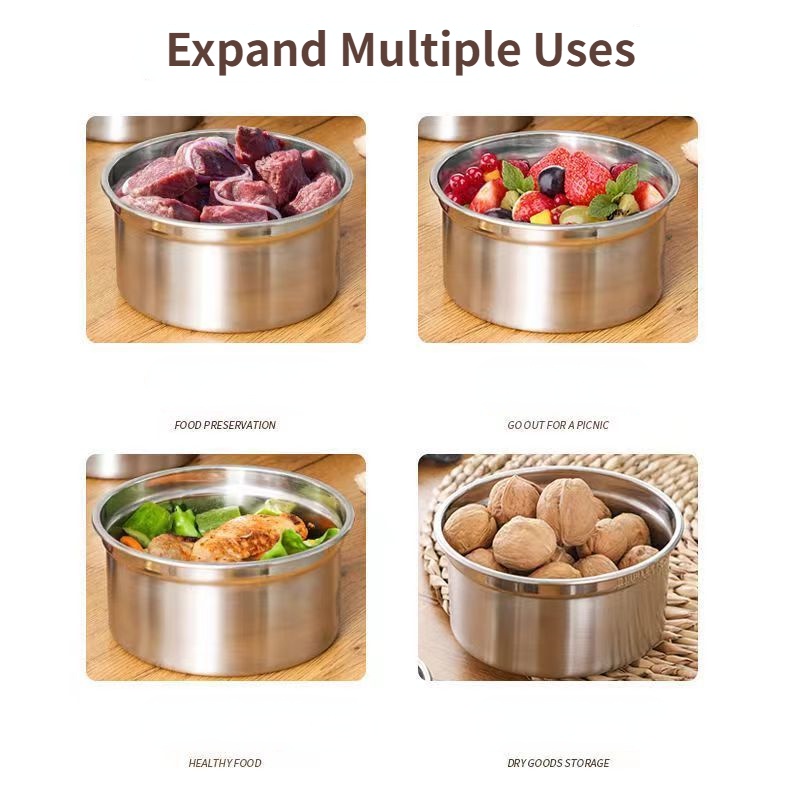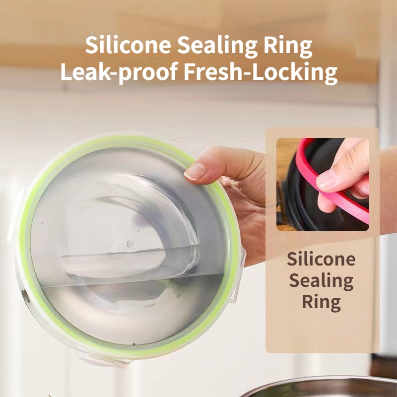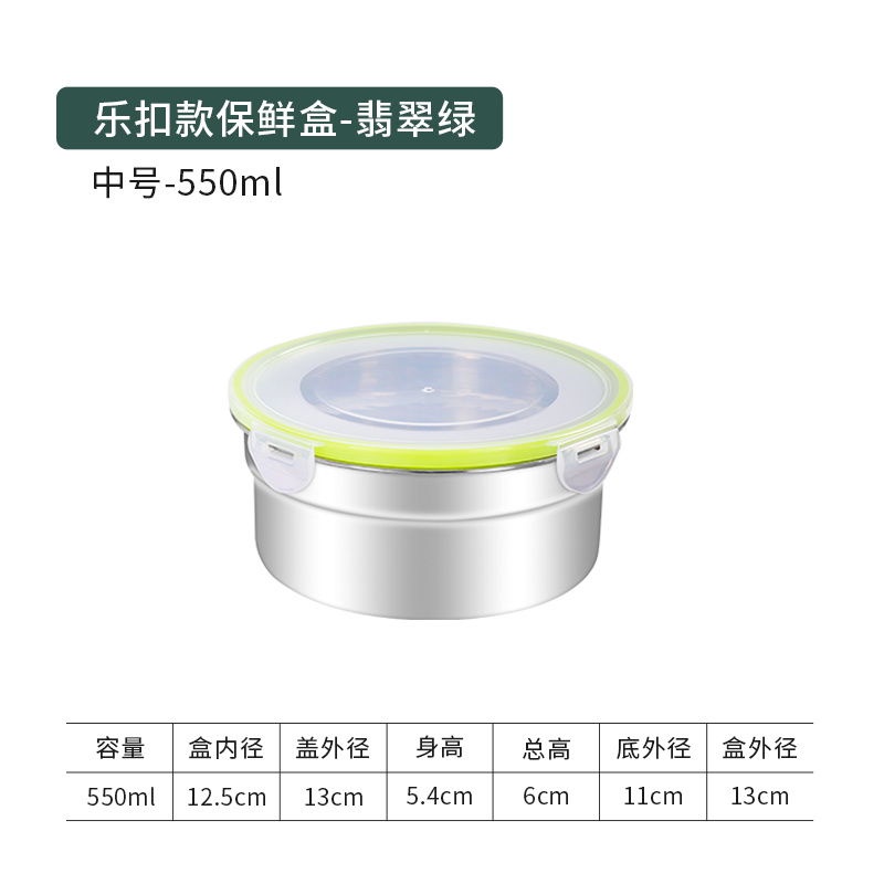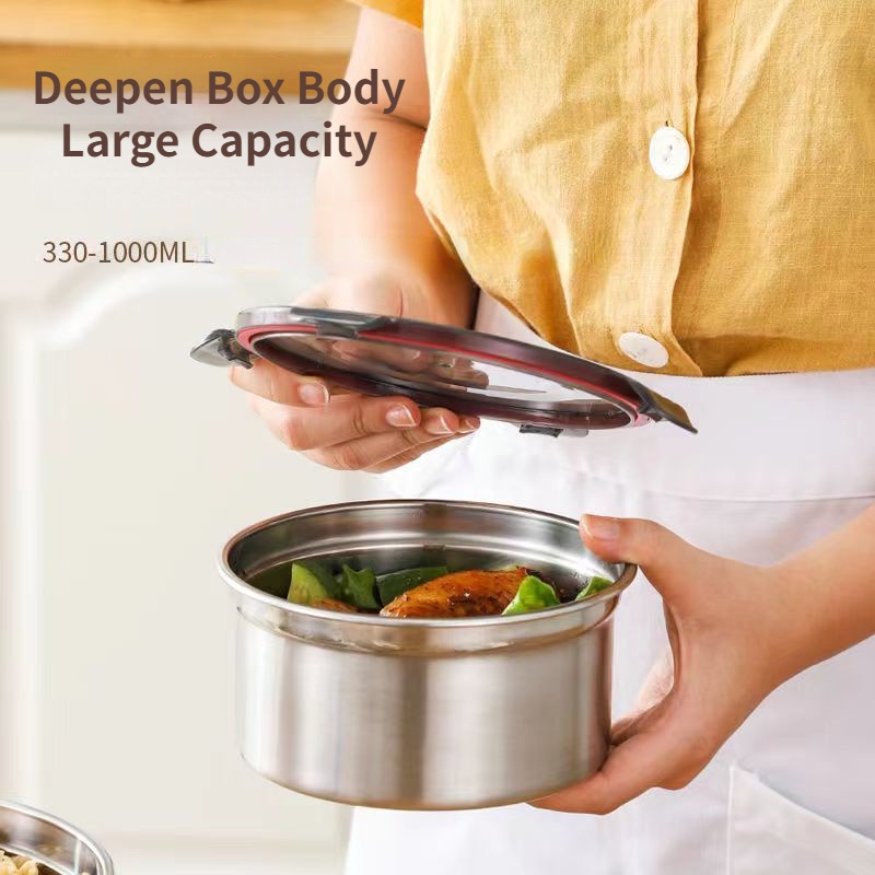 304 Stainless Steel Food Sealed Storage Box Crisper Box Refrigerator Organizer Box Round Bento Box with Lid Multifunctional Lunch Box Leak-proof Sealed Food Storage Box