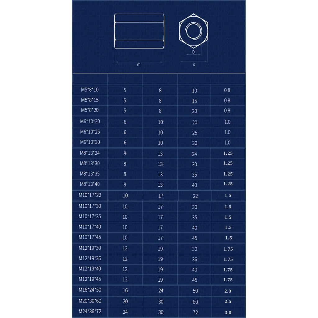 304 Stainless Steel Hex Rod Coupling Nut M5 M6 M8 M10 M12 M16 M20 M24 Lengthen Hexagon Coupling Nuts Connector Long Hex Nut