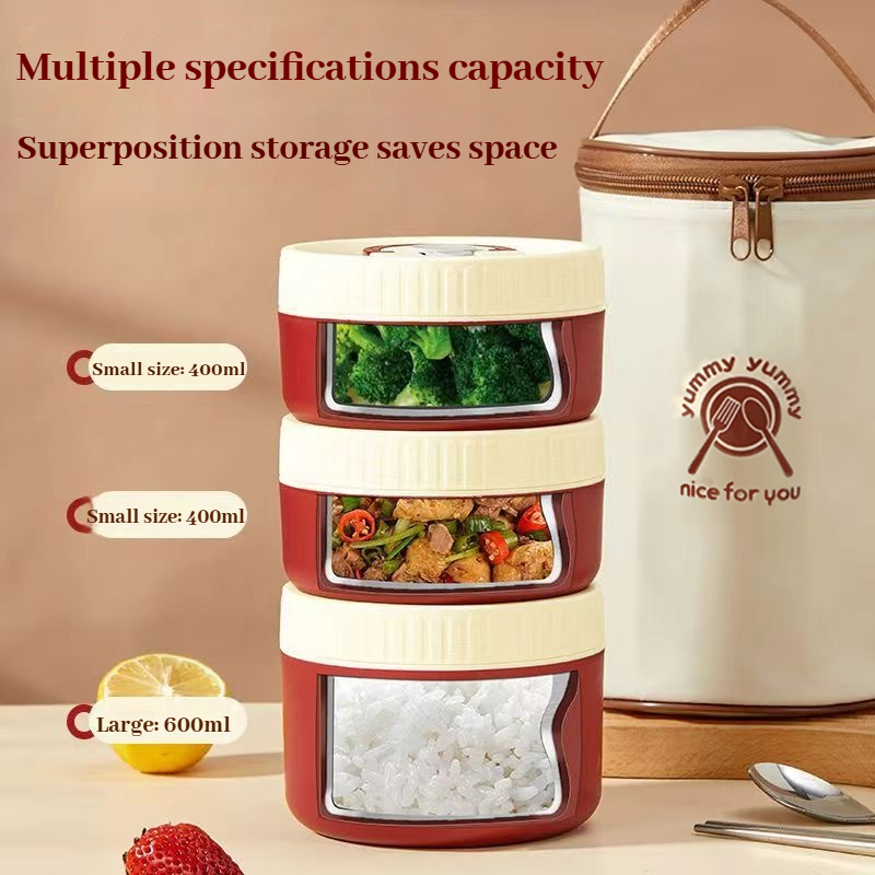 304 Stainless Steel Insulated Lunch Box Stackable Thermal Lunch Box Hot Food Bento Portable Home Leak-Proof Food Container Microwave Heated Student Portable Soup Bowl Gift Bag