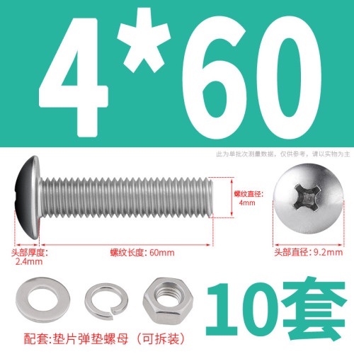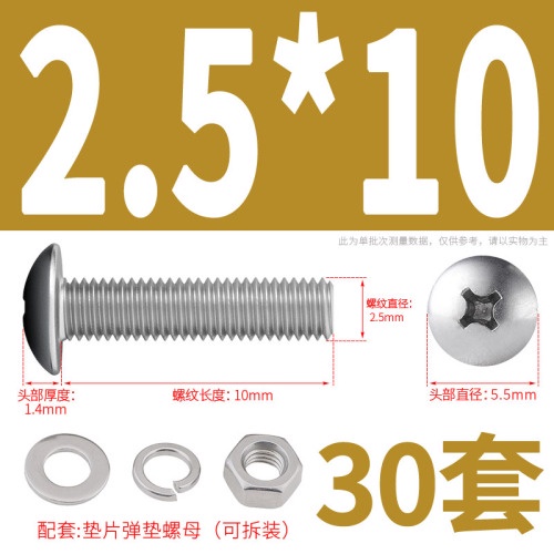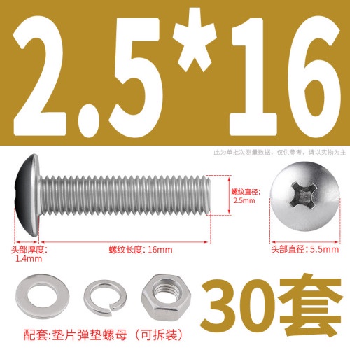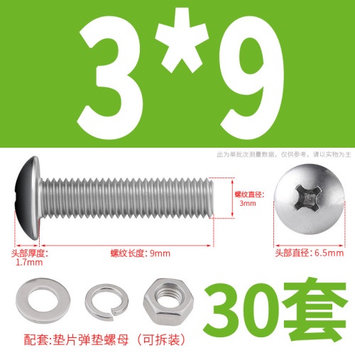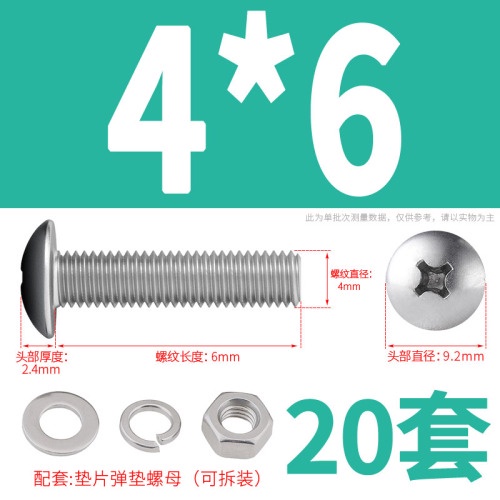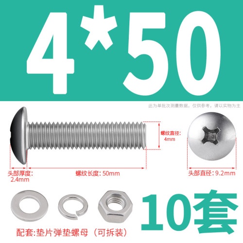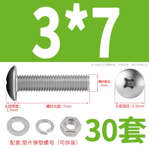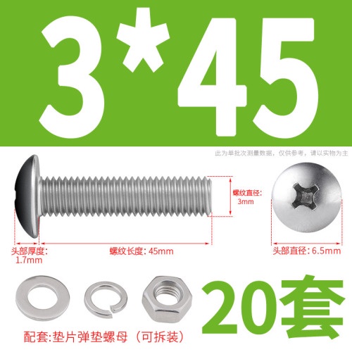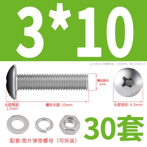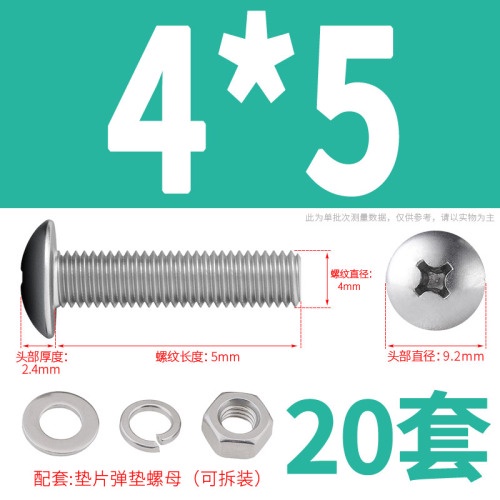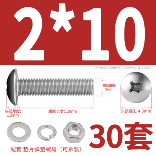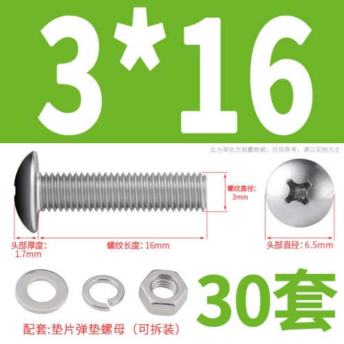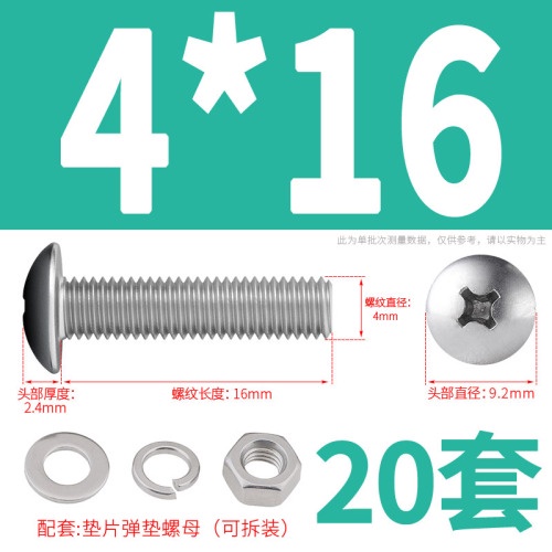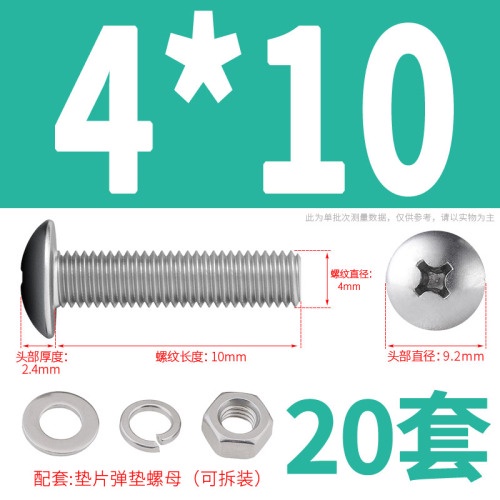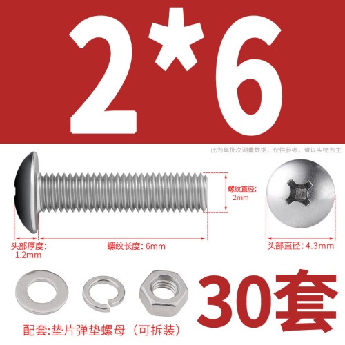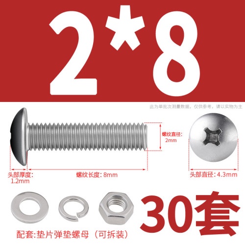 304 Stainless Steel Large Flat Head Phillips Screw Screw Nut Gasket Elastic Gasket Set Combination M2M3M4M5M6M8