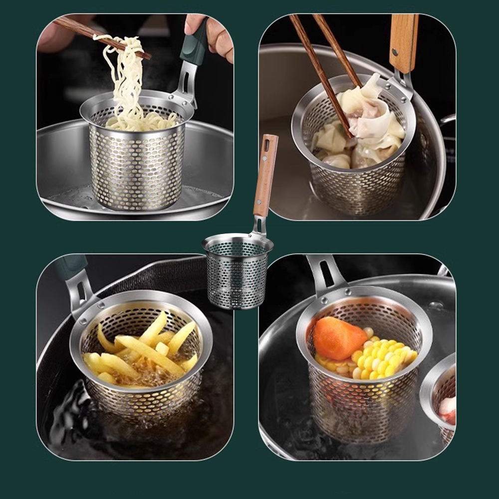 304 Stainless Steel Pasta Strainer, Rust-Resistant and Durable -Effortless Food Strainers with a Twist. Cookware Straining Utensil Meets Spaghetti Colander