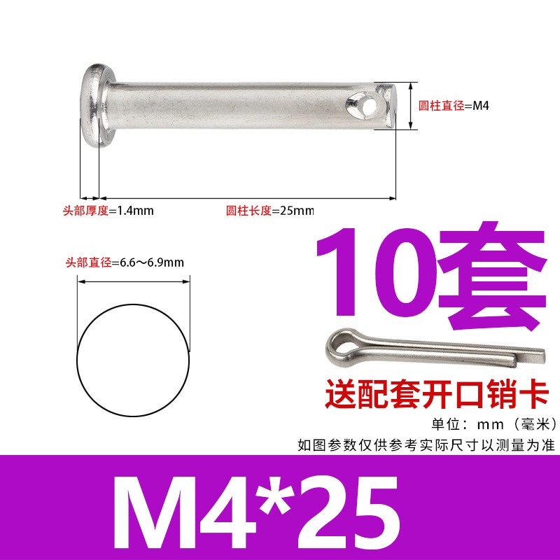 304 Stainless Steel Pin Shaft Flat Head With Hole Cylindrical Positioning Sub-Pin Nail M3M4M5M6M8M10