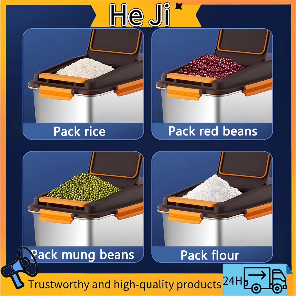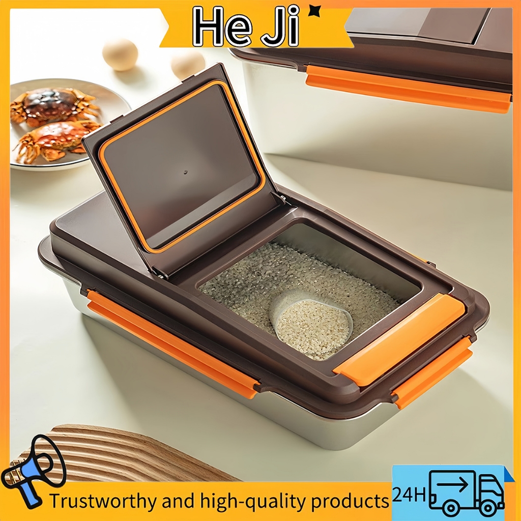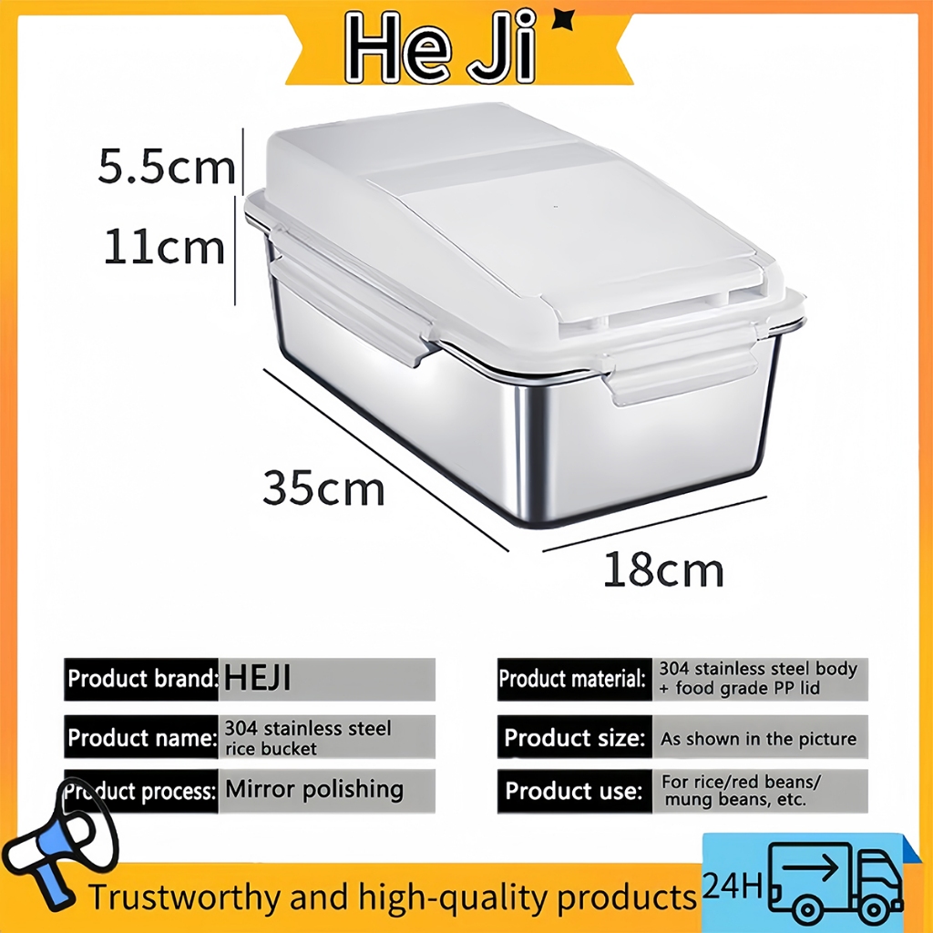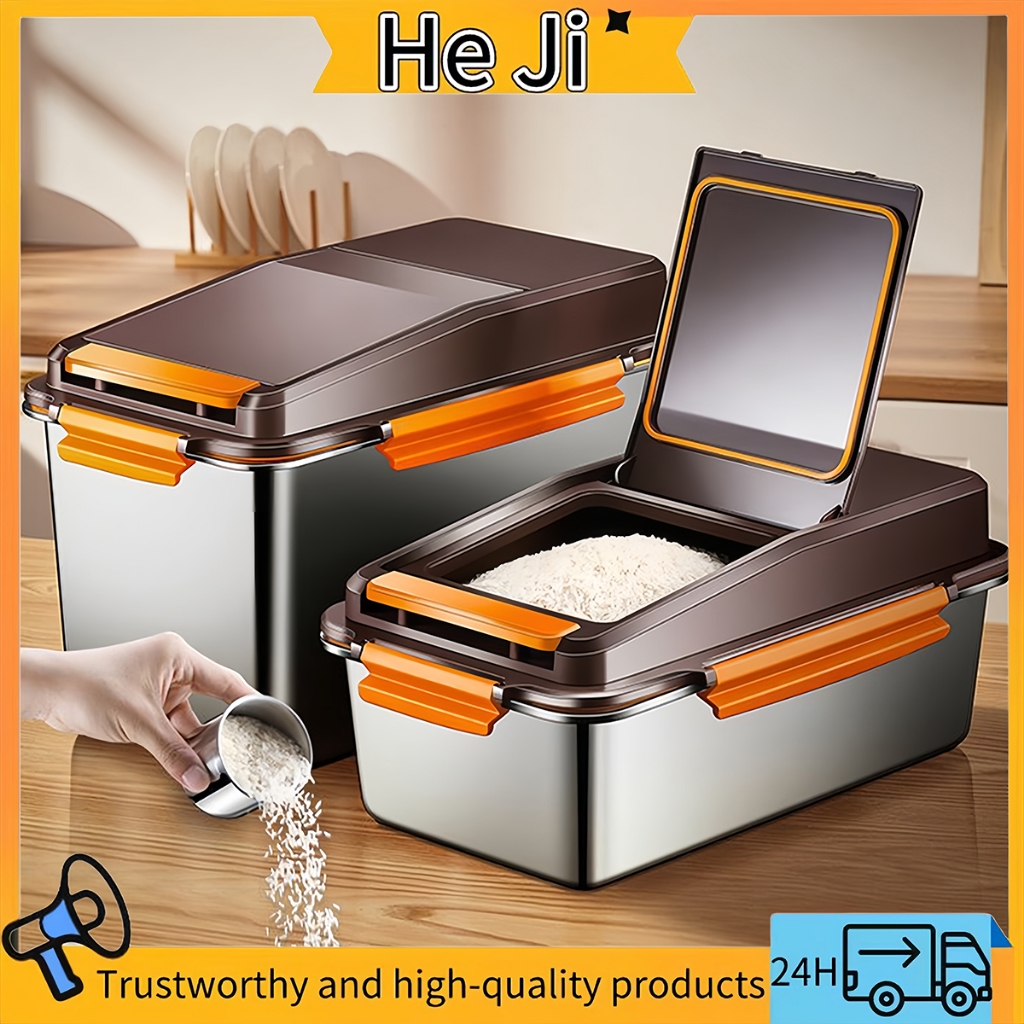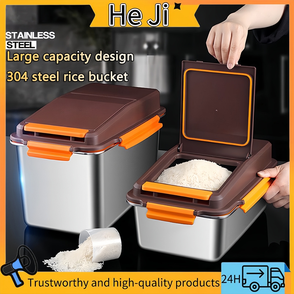 304 Stainless Steel Sealed Rice Bucket Moisture-Proof and Insect-Proof Storage Container for Home