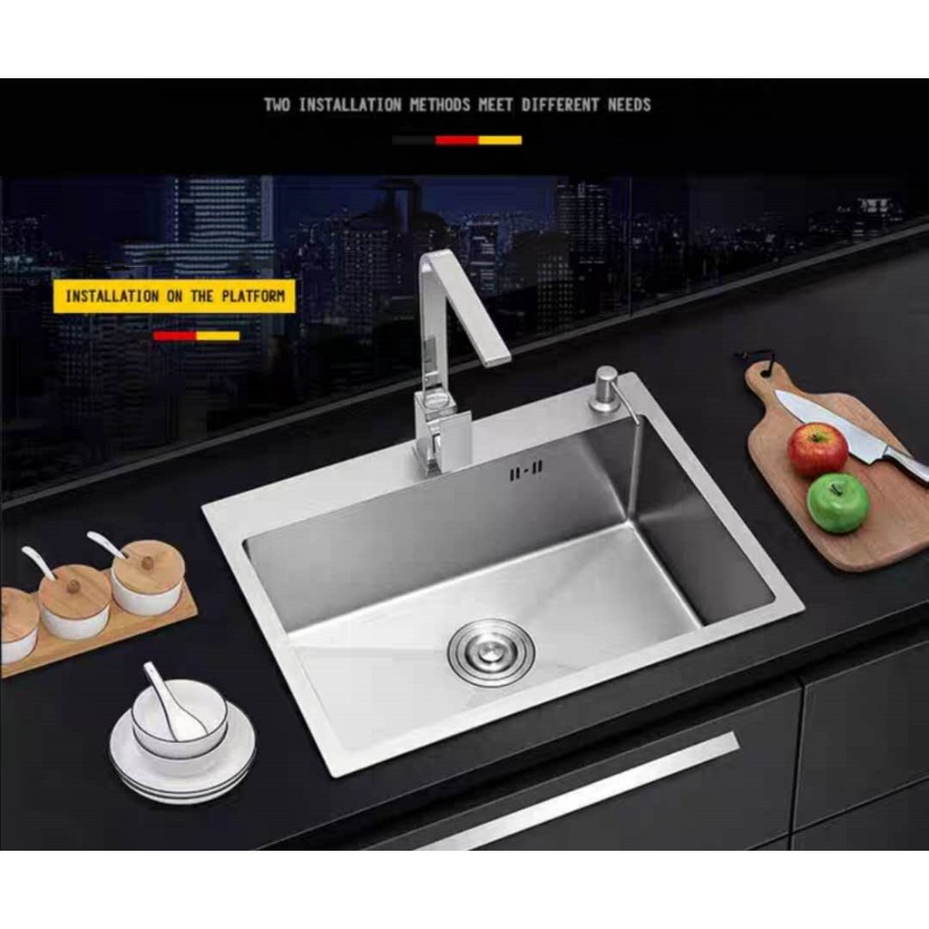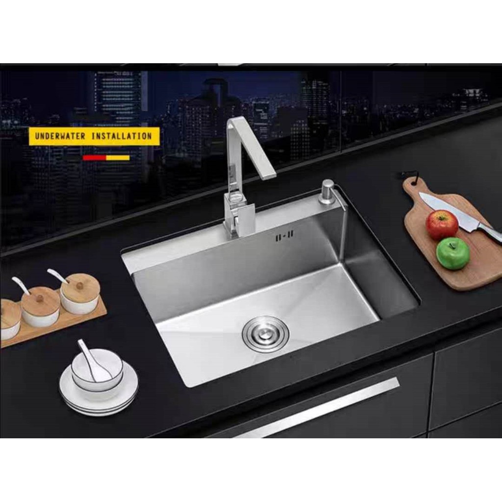 304 Stainless Steel Sink Single Slot Kitchen Size Dish Basin Pool Thick Handmade Sink Set