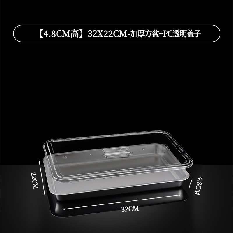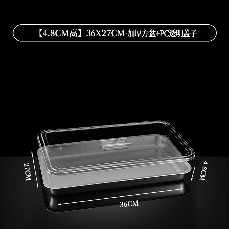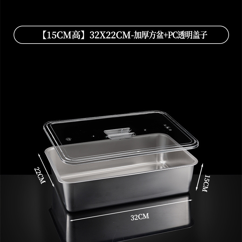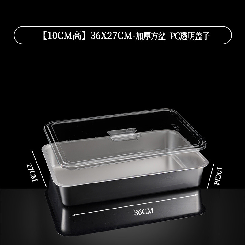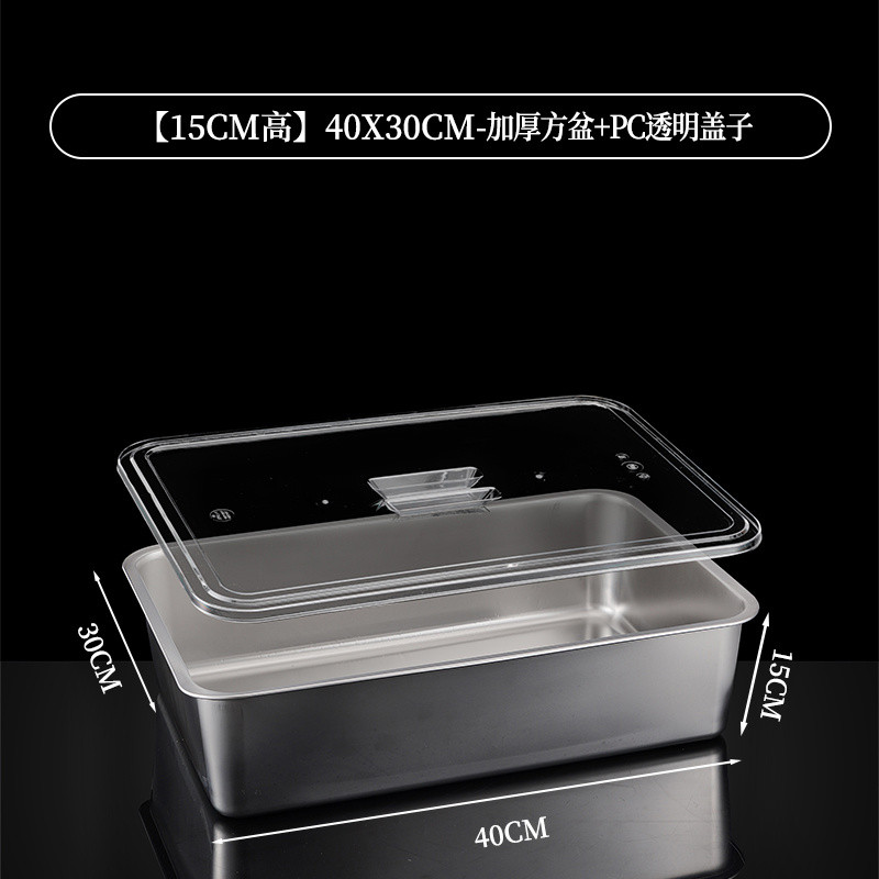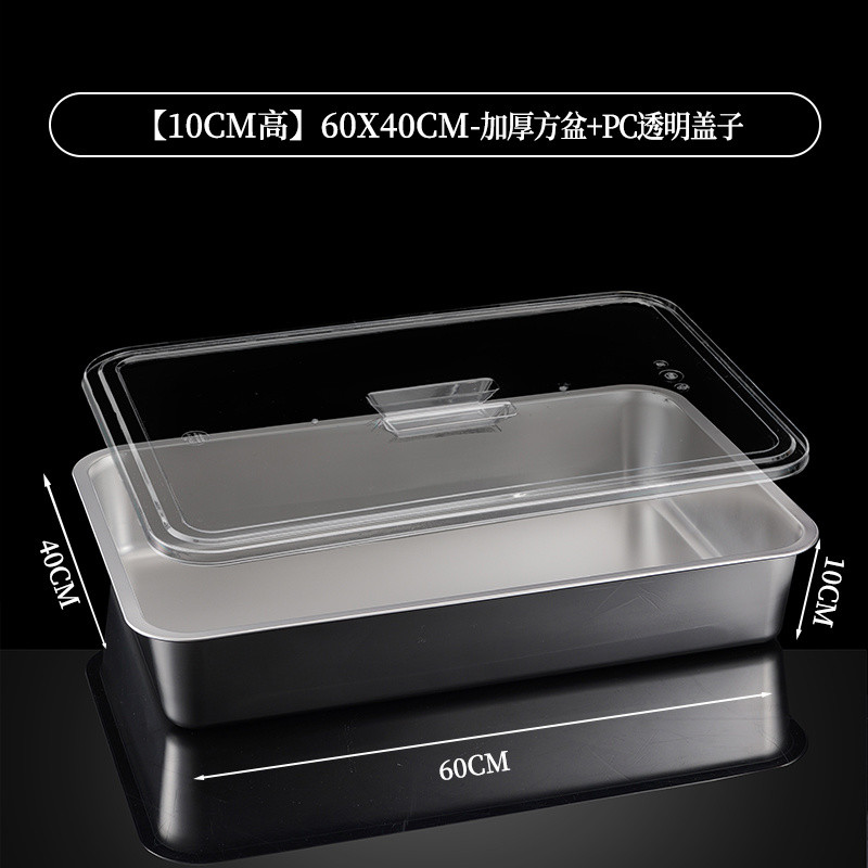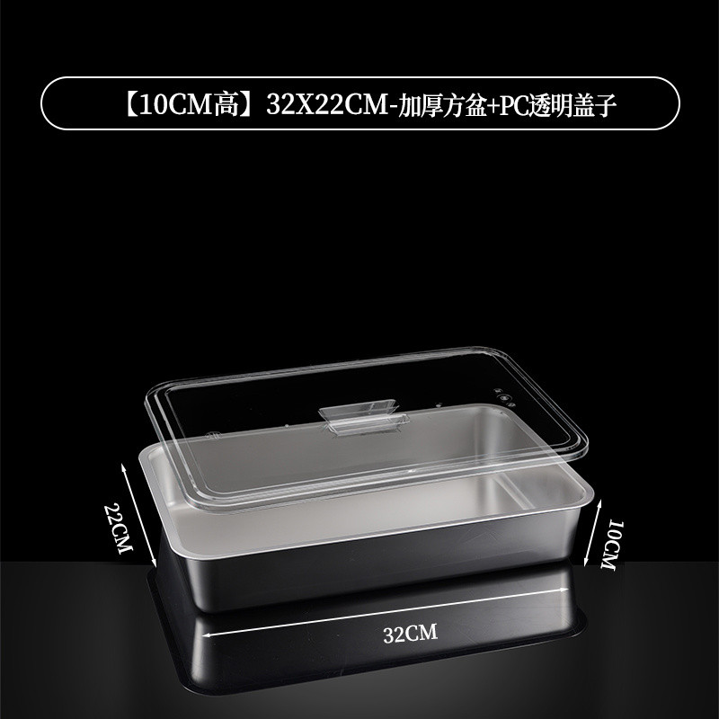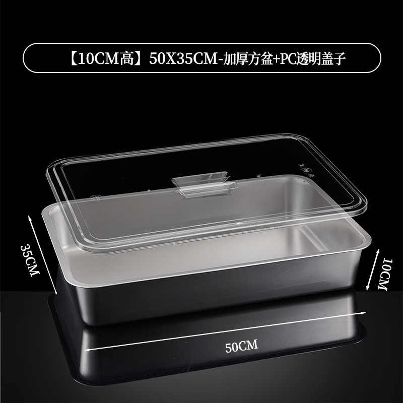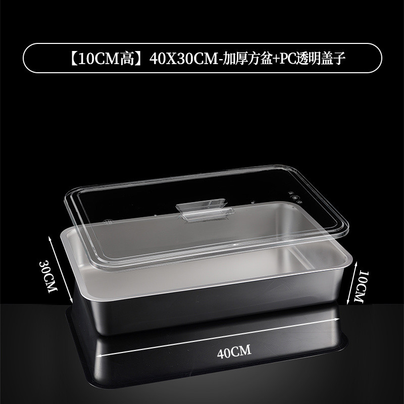 304 Stainless Steel Square Basin Rectangular Square Plate Buffet Basin Deepened Tray Fast Food Dish Basin with Transparent Lid Square Box